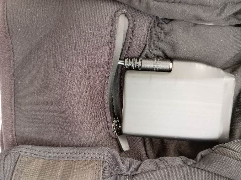 • The slimline rechargeable lithium ion battery is housed in a zip compartment on the inside of the wrist and is hardly noticeable in use.