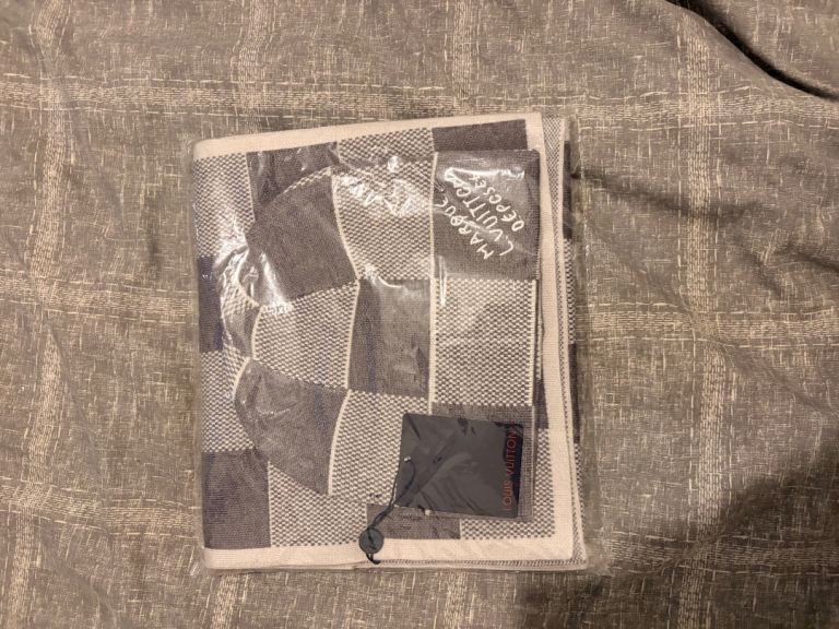 Grey Louis Vuitton beanie and scarf set, never worn and in the best condition