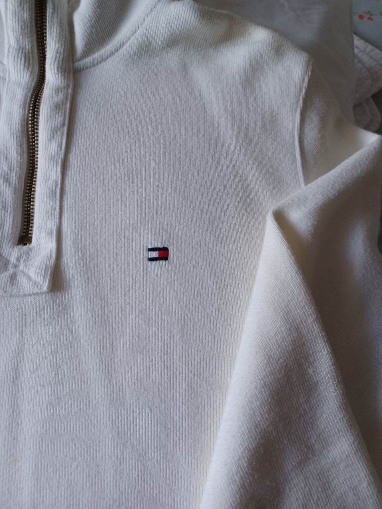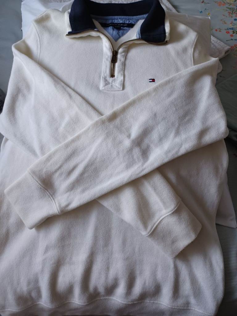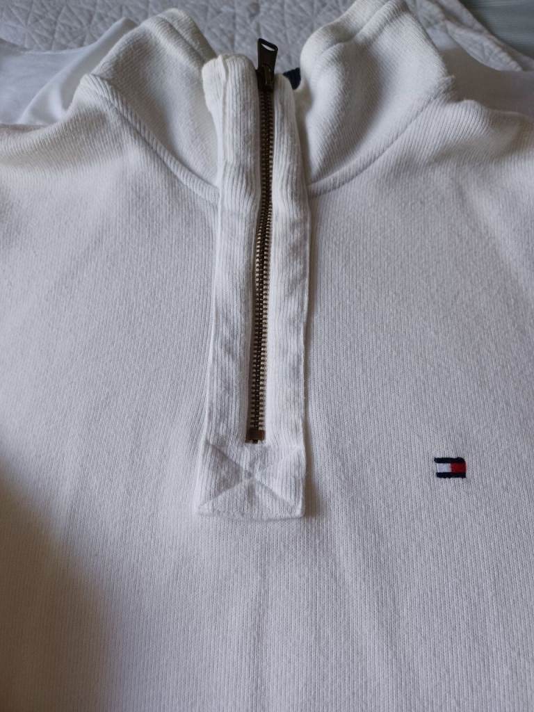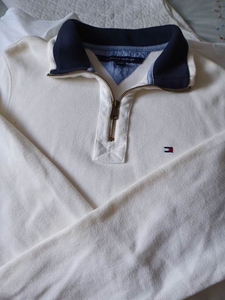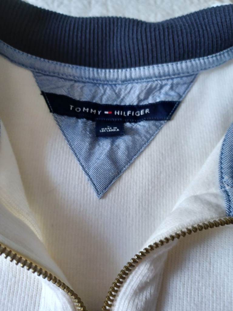 Designed by Tommy Hilfiger. Excellent quality and condition. Size L. White with navy blue collar.