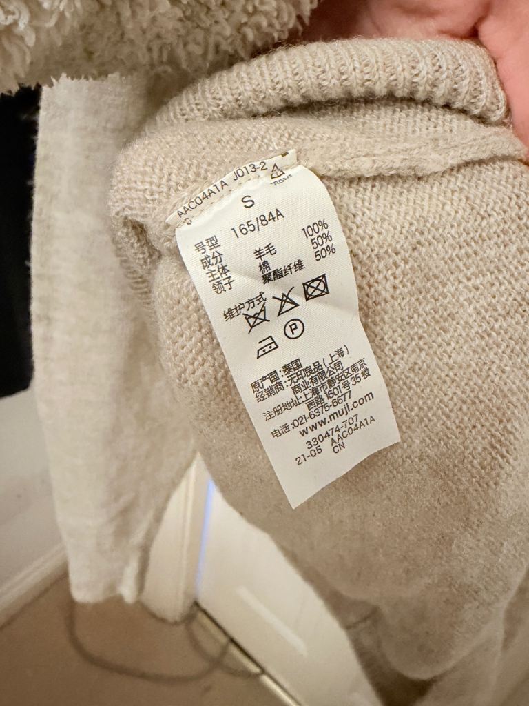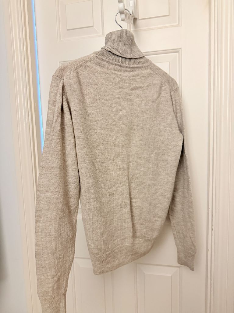 This is an oat high-neck sweater. I haven't worn it. 100% wool