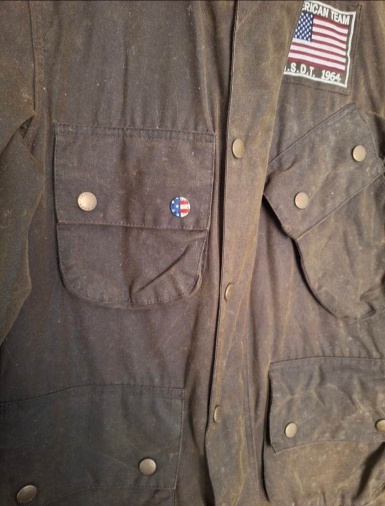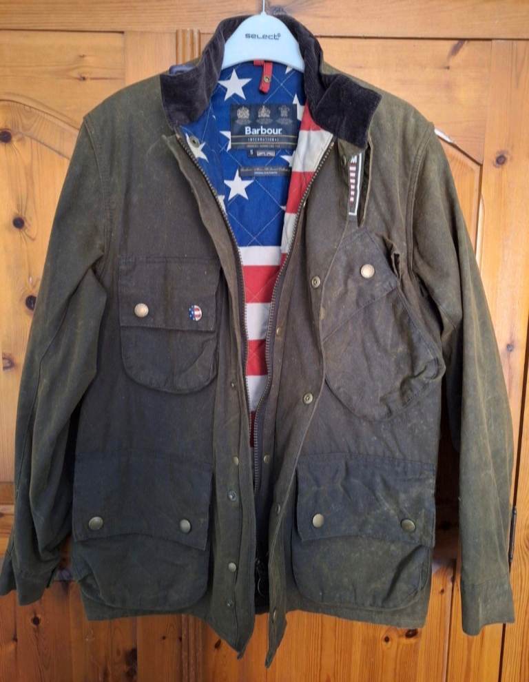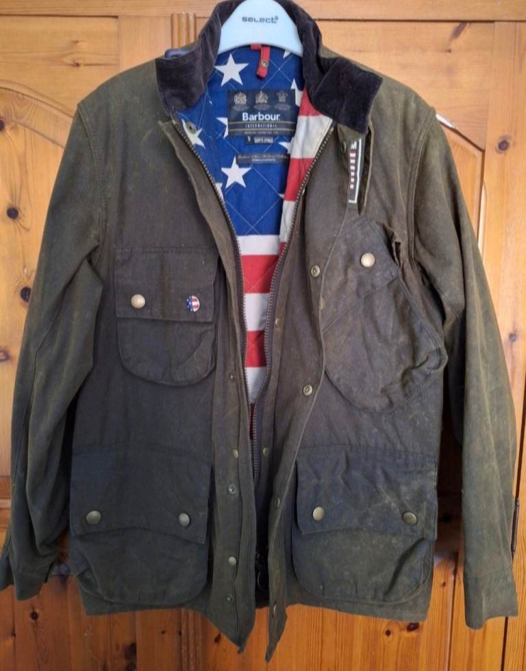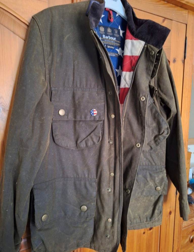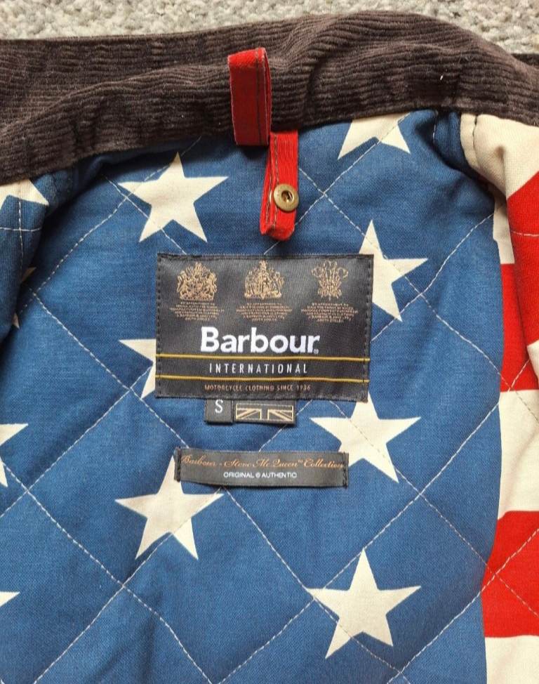 Barbour International Steve McQueen Wax Jacket Olive Green Waxed size small very expensive rare