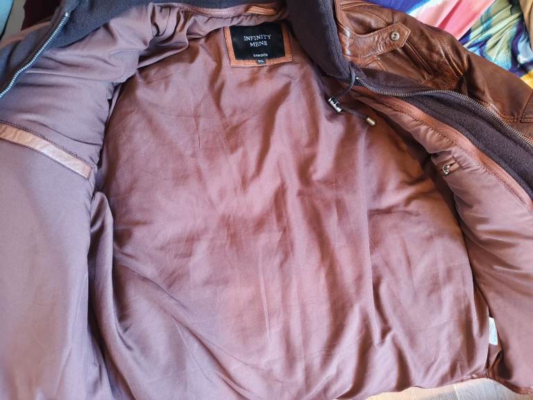 It's a 5 xl more like a 4xl ish, new, not worn but too small, 40 quid, any takers?? Thus is an Infinity leather jacket