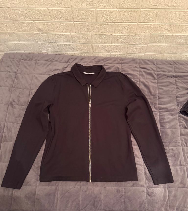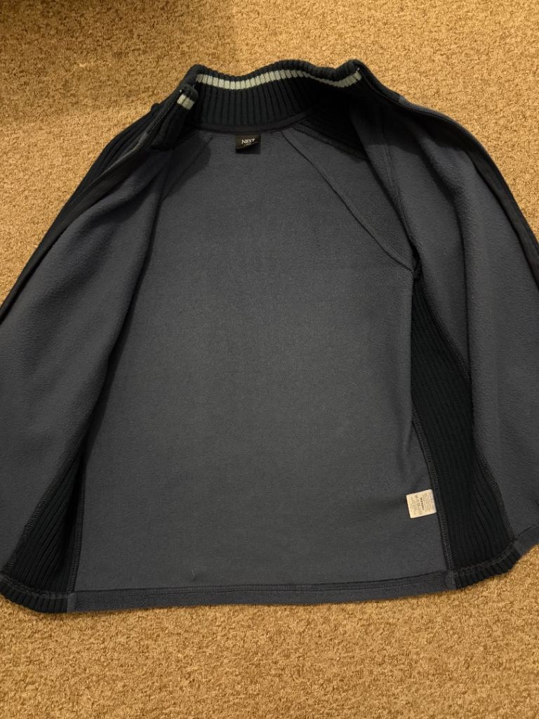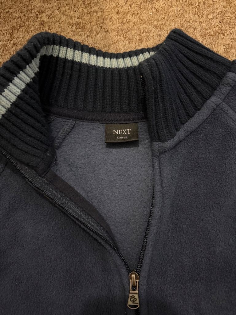 dark blue fleece jacket with full zipper