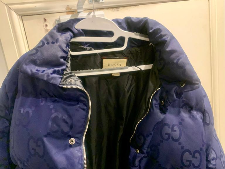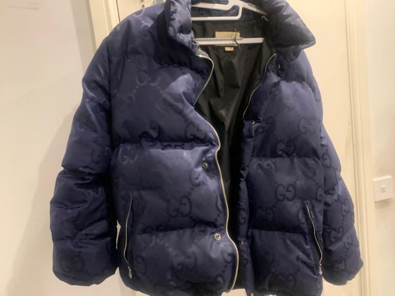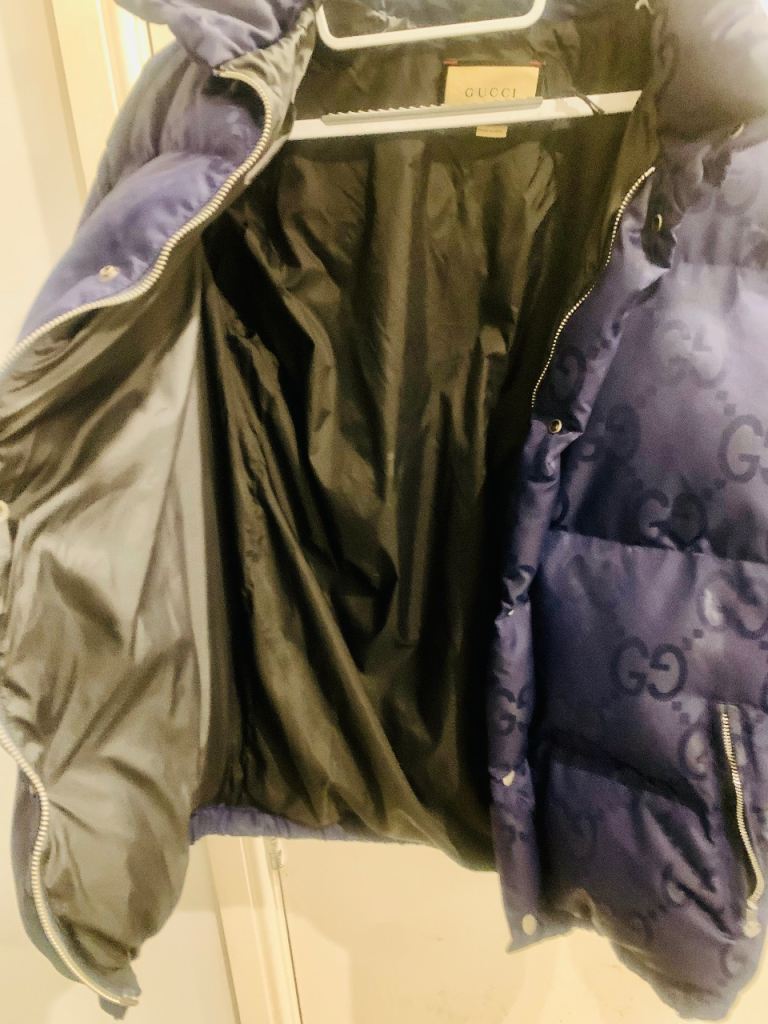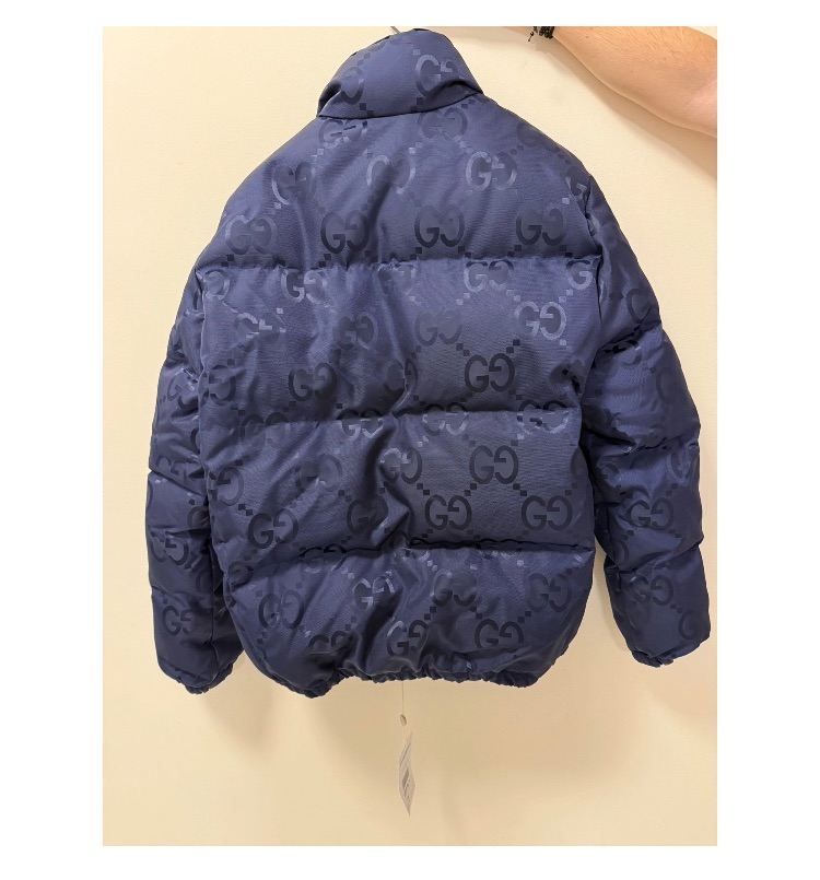 The Gucci Jumbo GG Canvas Down Jacket in Navy is an impressive piece that impresses with its iconic design and luxurious workmanship. The jacket combines style and functionality with high quality down filling for optimal warmth. The striking navy color, paired with the famous Gucci pattern, ensures a modern, urban look that convinces in every situation.
