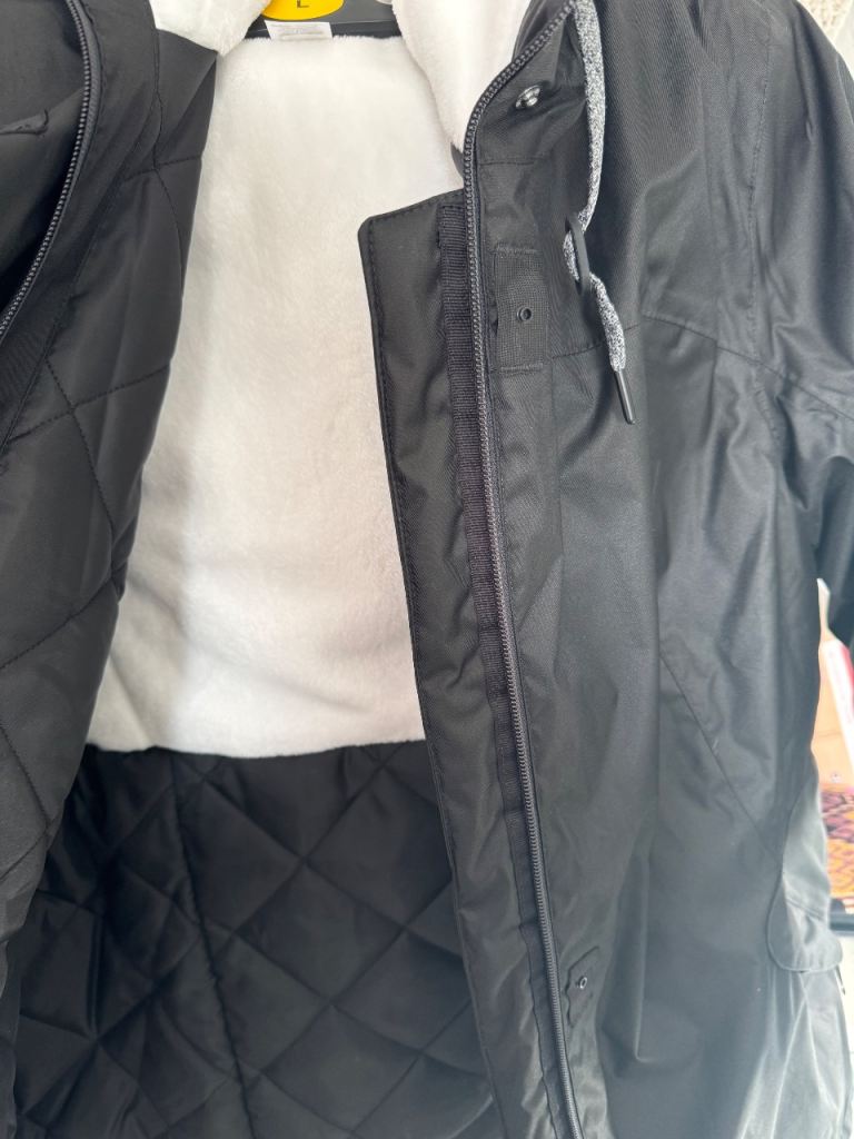 Has a full zip front and comfortable material, kept clean and well-maintained.