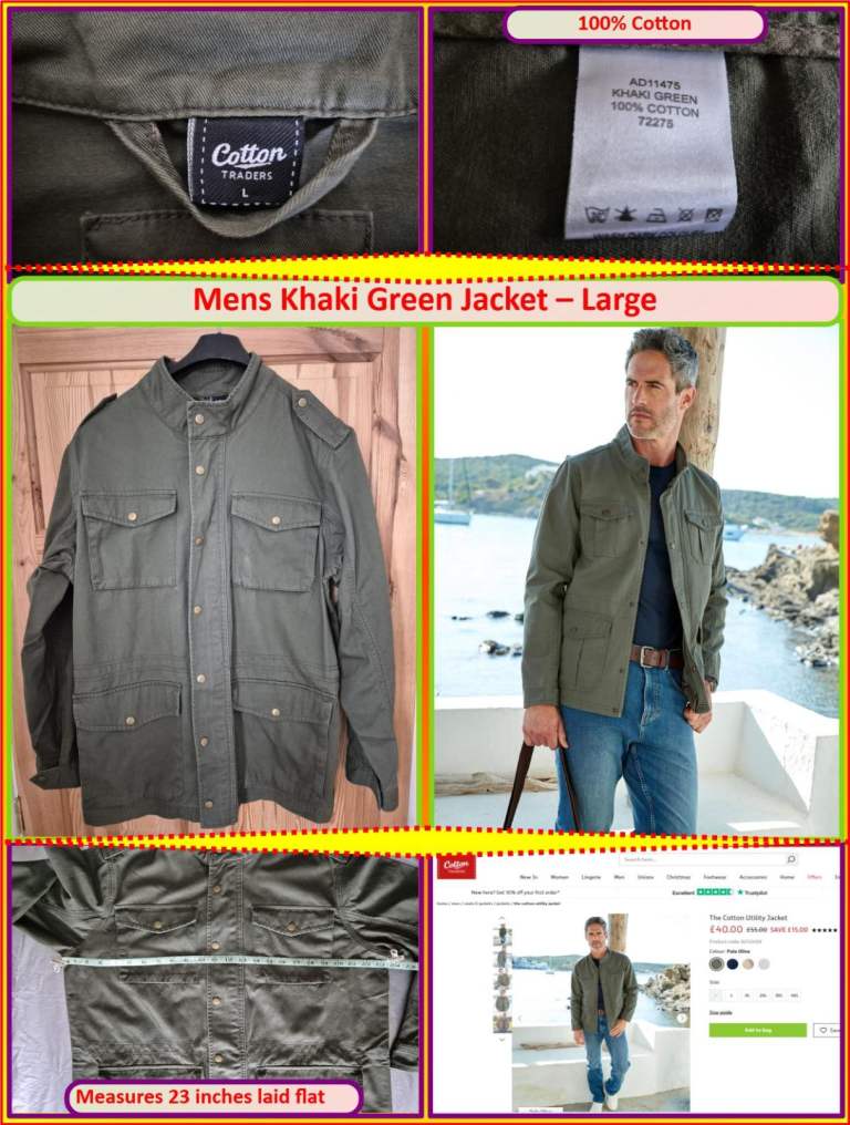 This jacket has hardly ever been worn, is in excellent condition, clean and ready to wear; it has a 40 inch/ 100 cm chest and is 80 cm from collar to the bottom hem; the jacket is 44% pure new wool, 56% polyester/elastane; the jacket is fully lined and has 2 deep inside pockets, a pen inside pocket and a cash inside pocket; PLEASE NOTE pictures taken during changes in sunlight