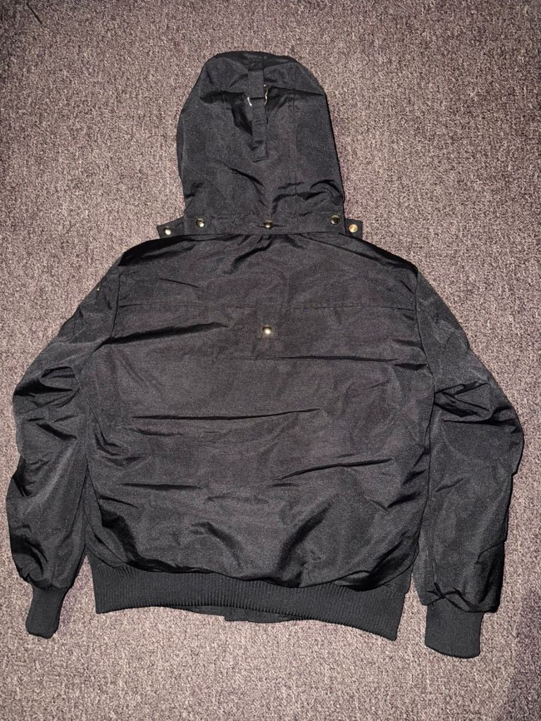 Moose knuckles hooded fur trim bomber jacket.
