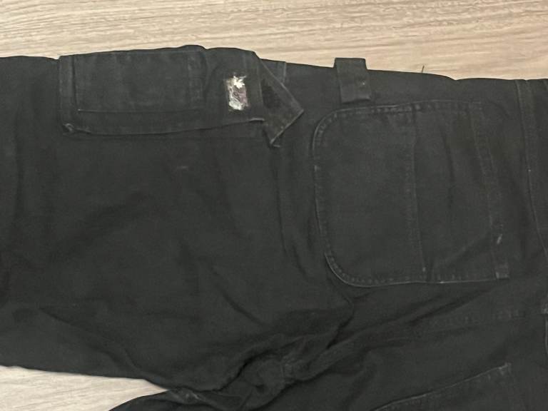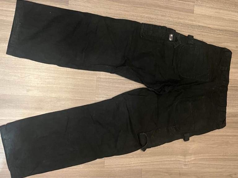 Dakota Workwear, Carpenter Pants, Black Cargo Trousers, Distressed, Baggy Fit, 34x32, Streetwear