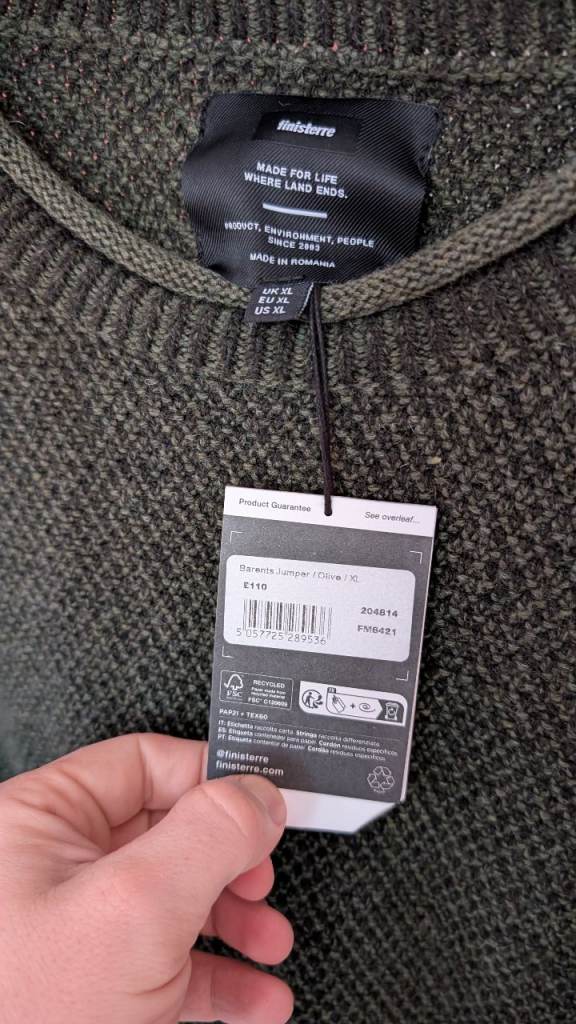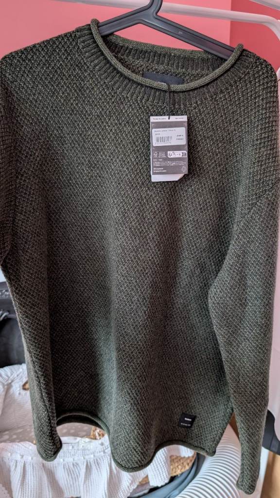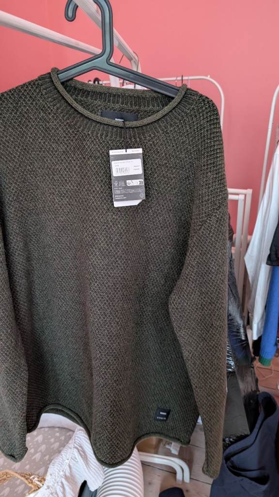 Brand new Finisterre XL knitted wool jumper in olive. Never worn as I got the wrong size and it's too late to return. A bargain at £60.