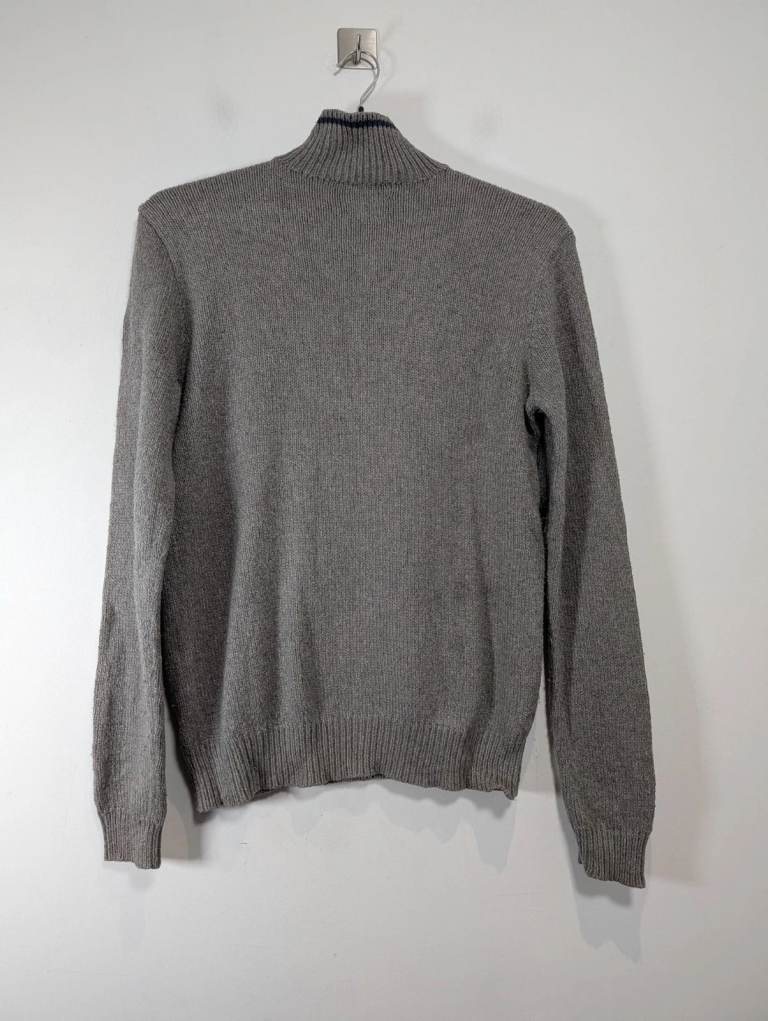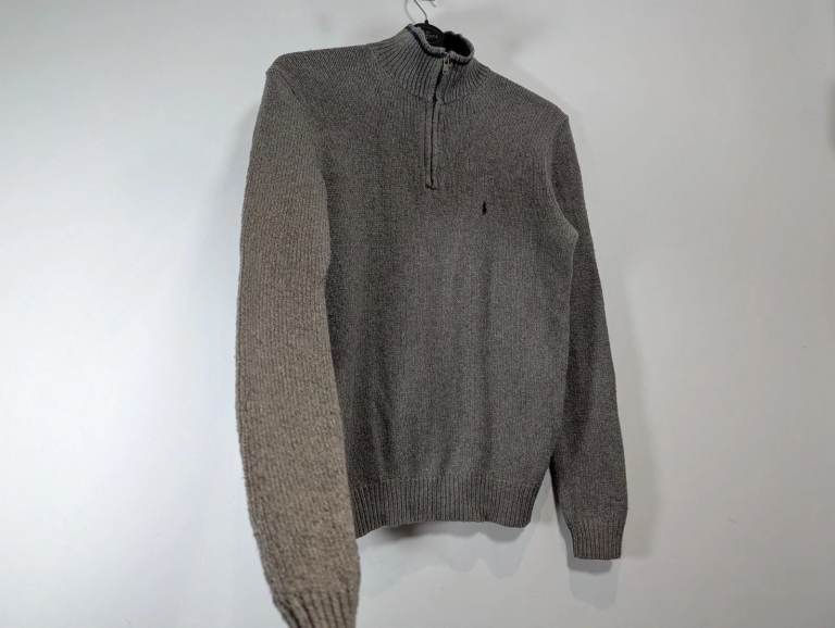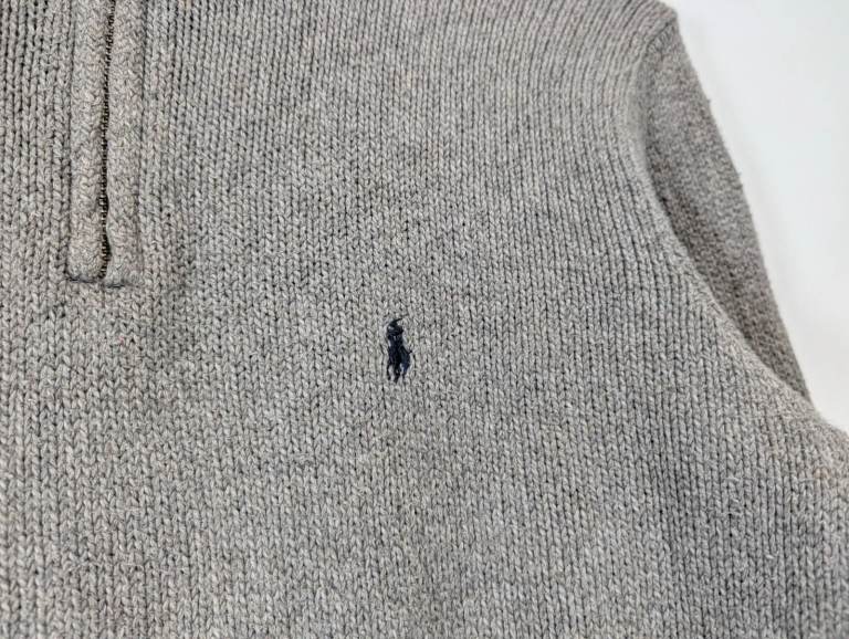 Polo Ralph Lauren Jumper Men Small Grey Cotton Knitted Classic 1/4 Zip Sweater