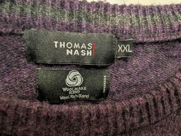 Thomas Nash Jumper Men 2XL Purple Wool Rich Blend Warm Winter Classic Knit