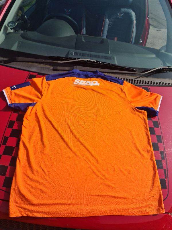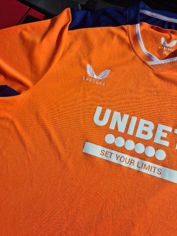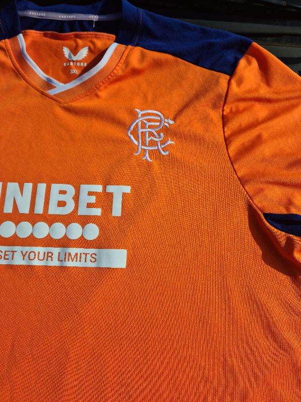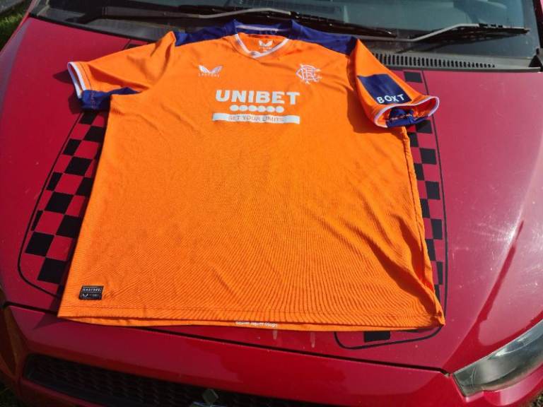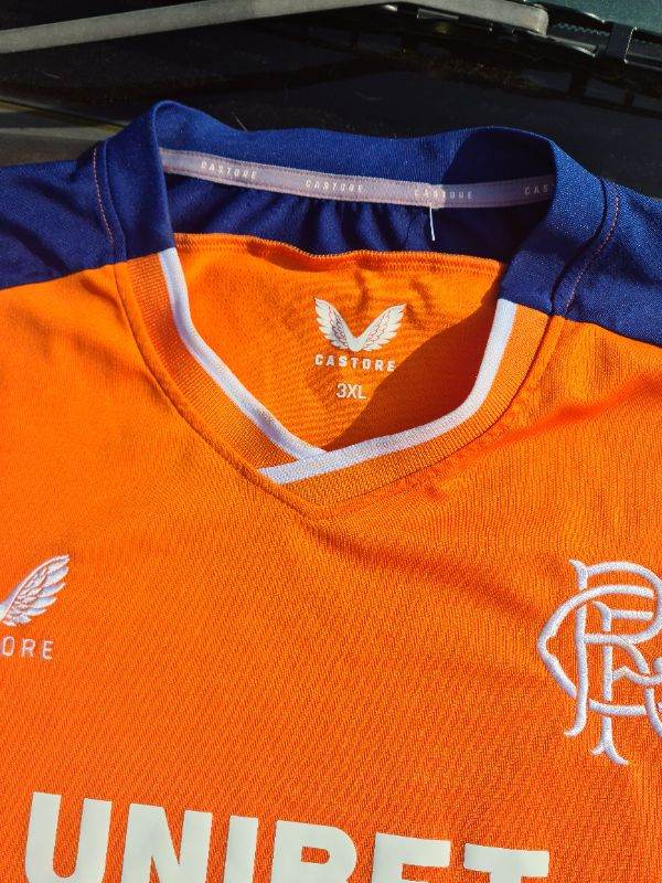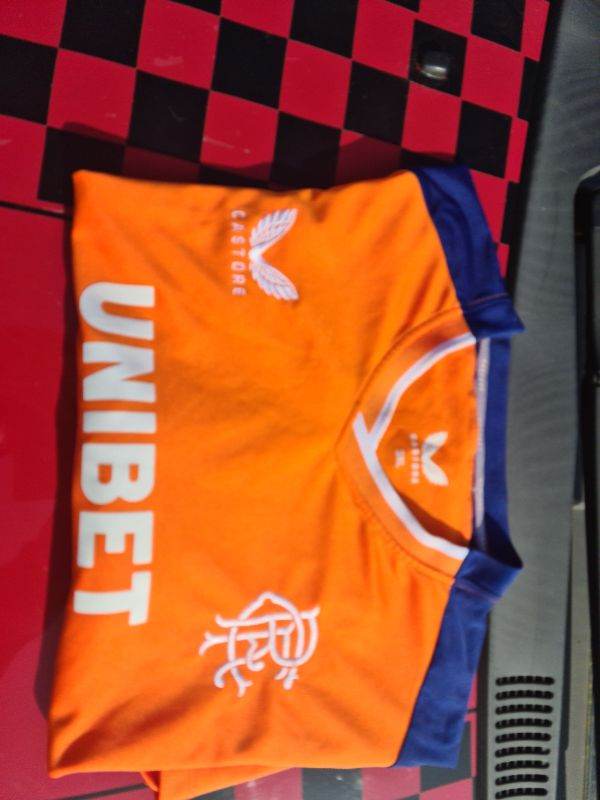 Glasgow Rangers Authentic Castore Large Orange Pro Shirt 22/23 Third Rare. I have cleaned and sterilised it meticulously. See photos for condition size flaws materials etc. I can offer free local delivery within five miles of my postcode which is LS104NF. I am also in Wakefield on Monday, Wednesday and Friday lunchtimes so free delivery possible around Wakefield but Strictly with mutually agreed terms prior to end of auction/ sale. i can offer postage at extra cost which is via Royal Mail