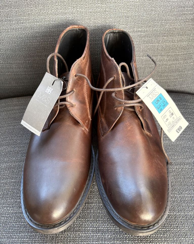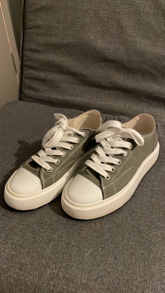 A little sun damaged in one side of the sole, but otherwise in excellent condition