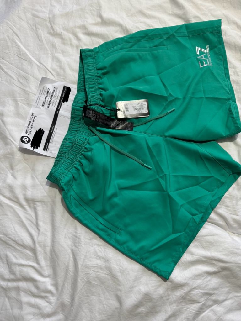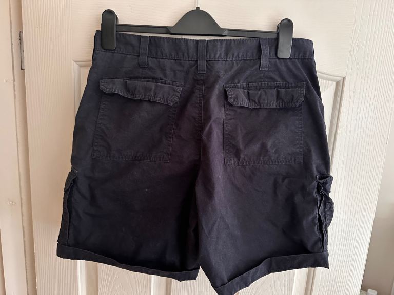 Pockets at back, sides and on legs. Good condition and still dark blue.