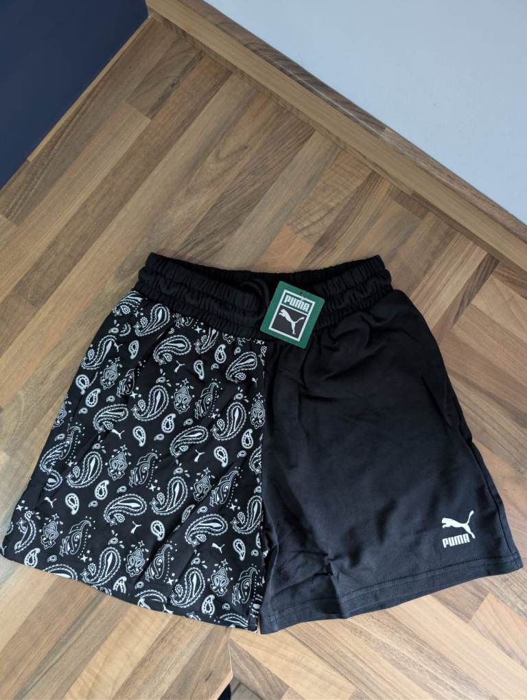 New packaged mens puma shorts xs. Black and white. Mainly black.
