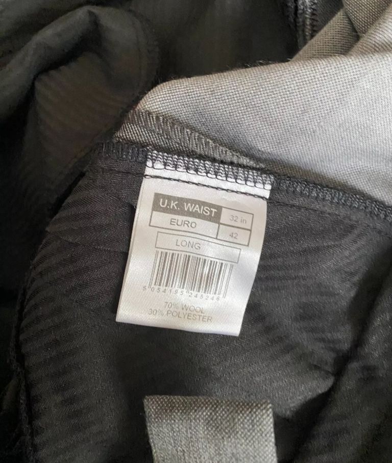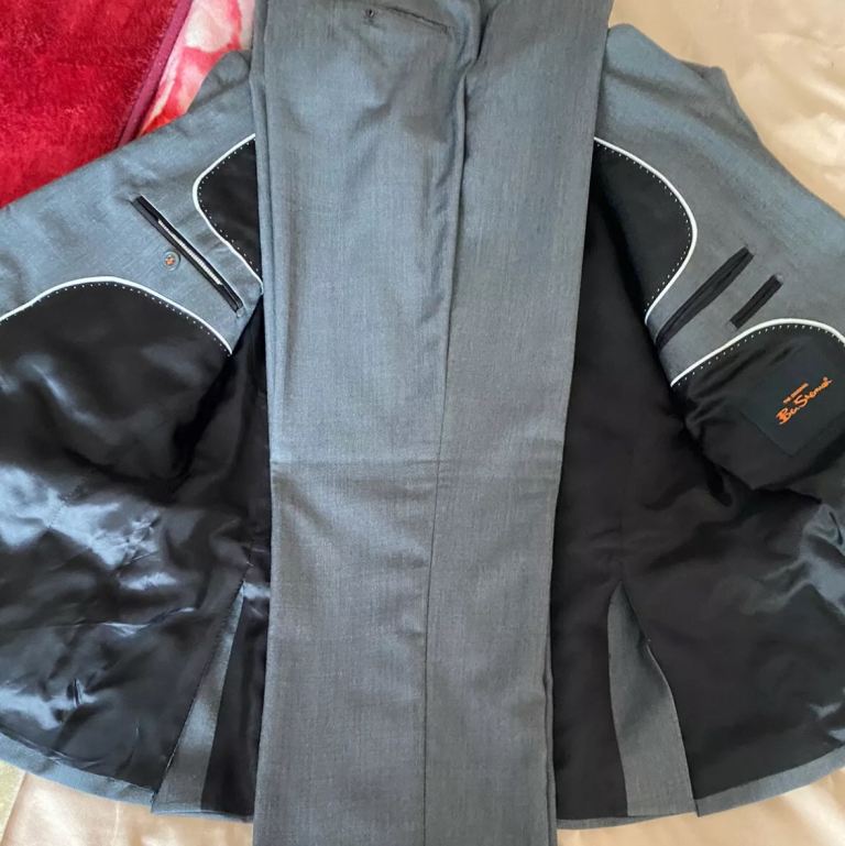 This grey Ben Sherman 2 piece suit is perfect for any formal occasion, whether it's a wedding, party, or business event. The suit is made from a blend of polyester, viscose, and wool, with a 100% viscose lining material. The jacket features a single-breasted cut, two-button front button style, and inner pockets, while the trousers have a straight leg style and a 32-inch inside leg.