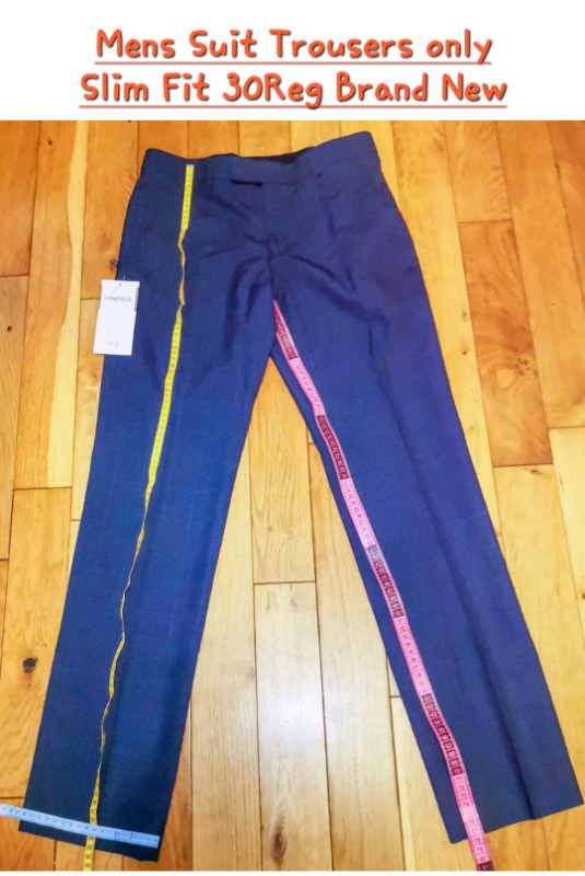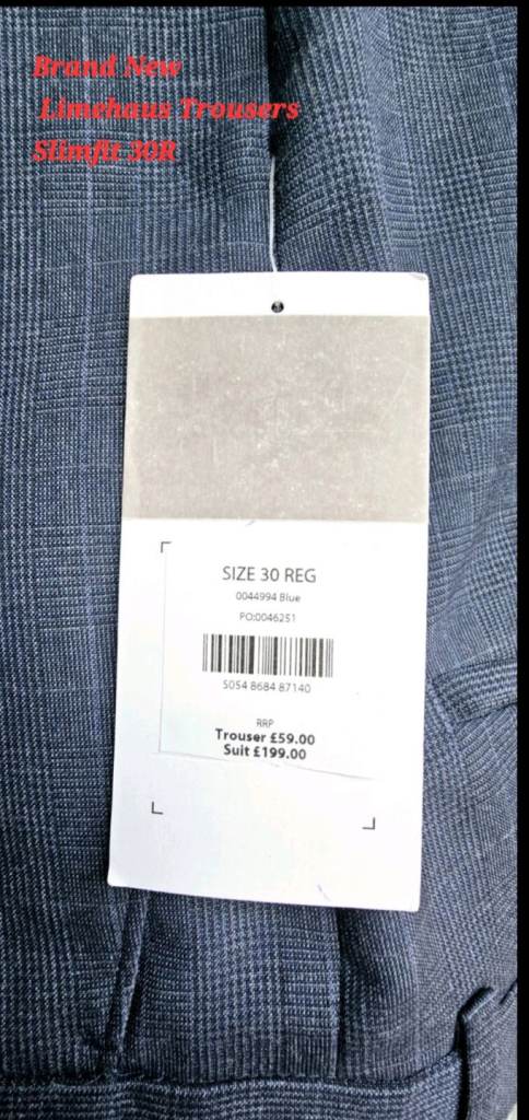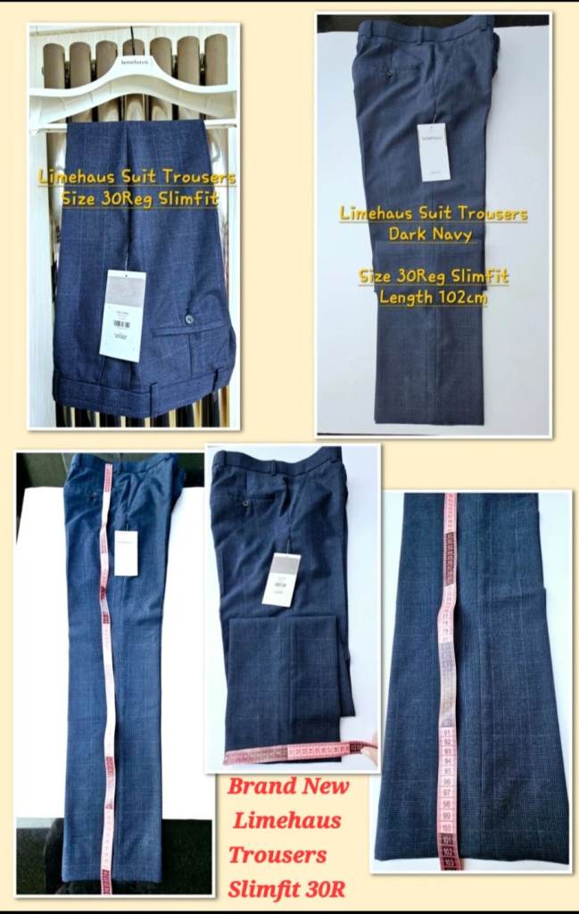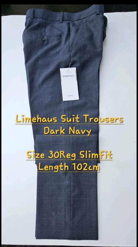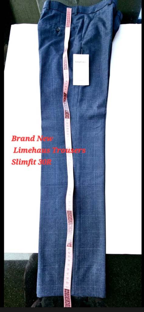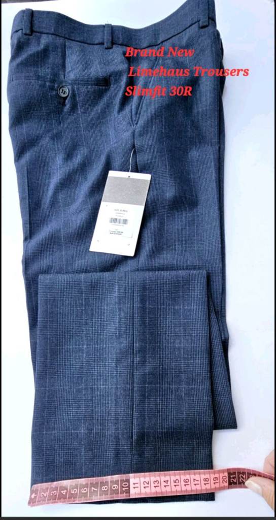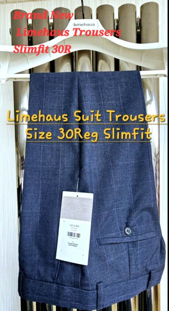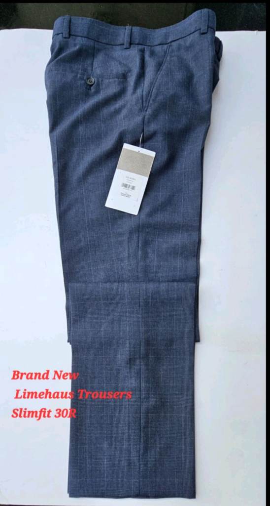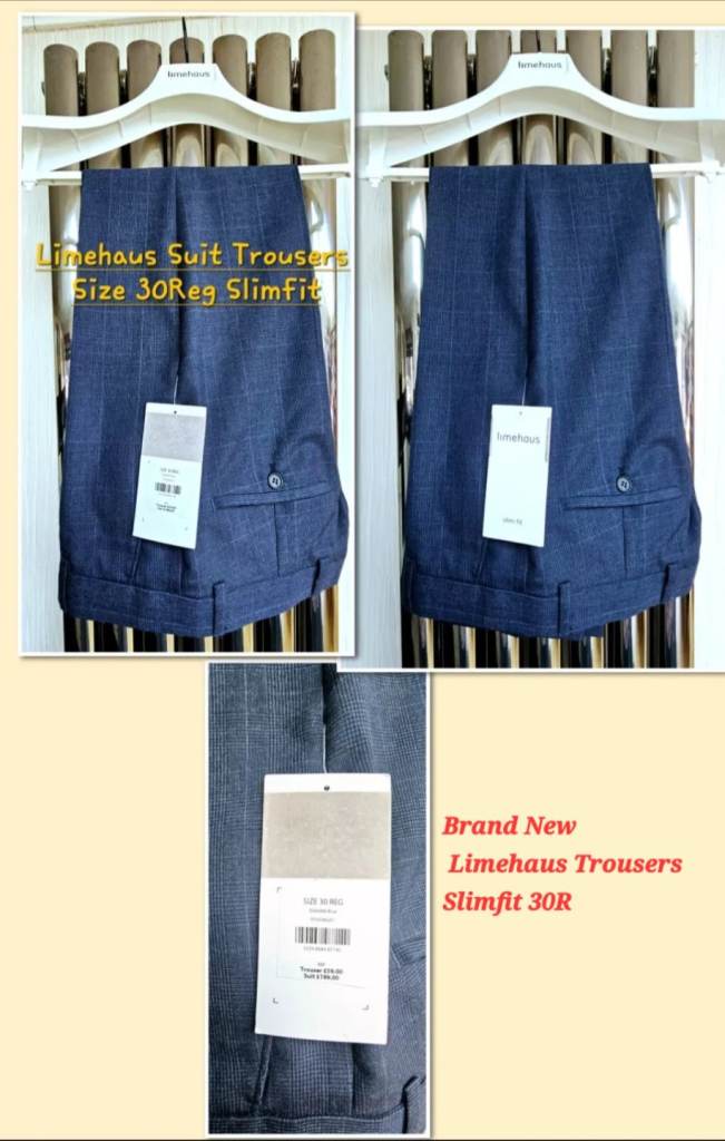 Mens Limehaus Tailored Suit Trousers Slim Fit 30Reg Brand New Blue Checked