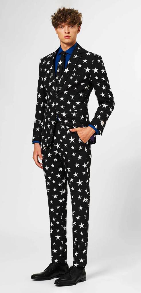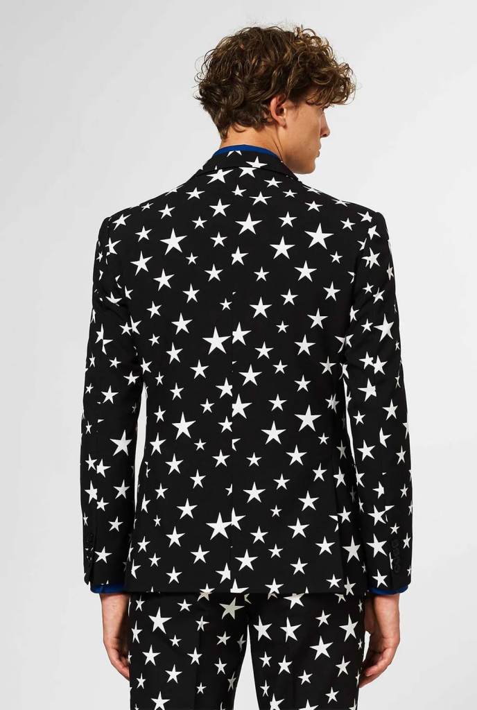 Mens opposuits 'Starstruck' black star suit and tie. Wear it to a party as a statement!