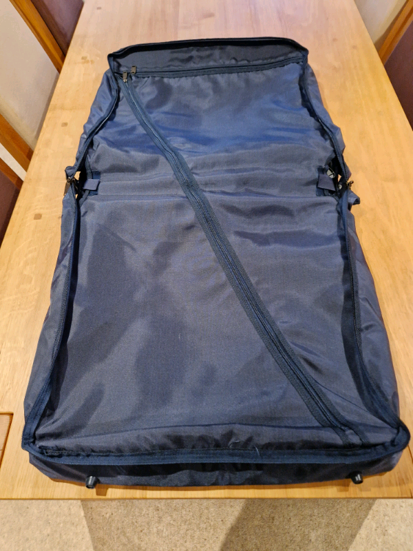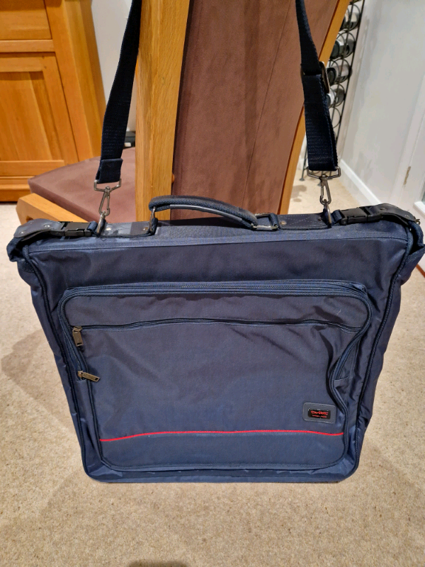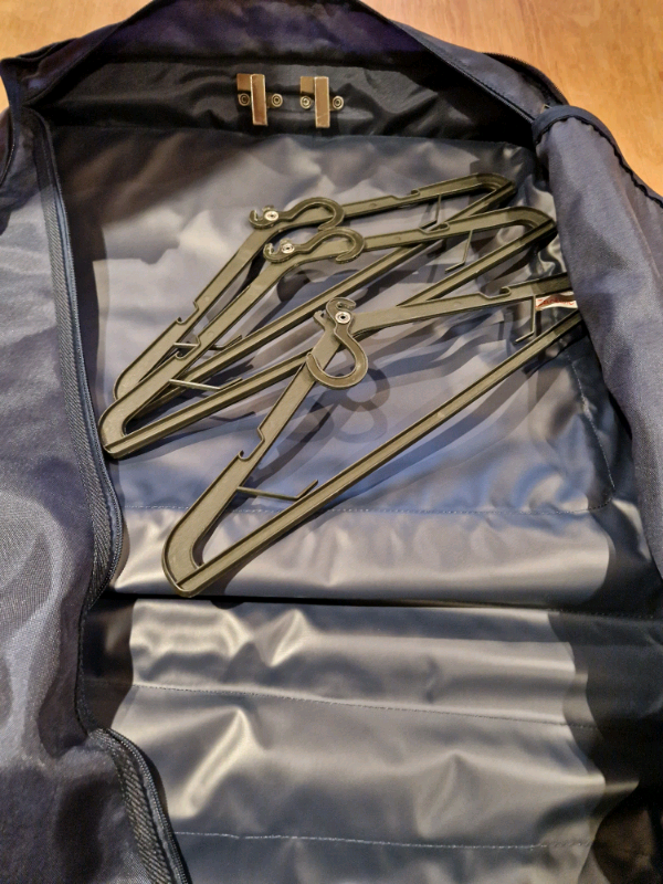 Carlton brand top of the range multi suit holder. Shoulder strap and carry handle. Exterior hanging hook. Interior 3 hanger hook, 4 hangars included. Front and rear side pockets. Really excellent condition, no signs of wear. Can post parcel force to UK mainland for £6 extra.