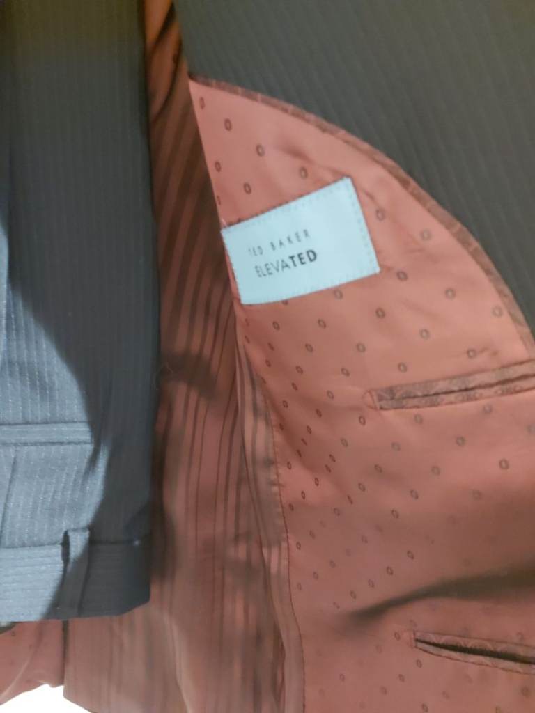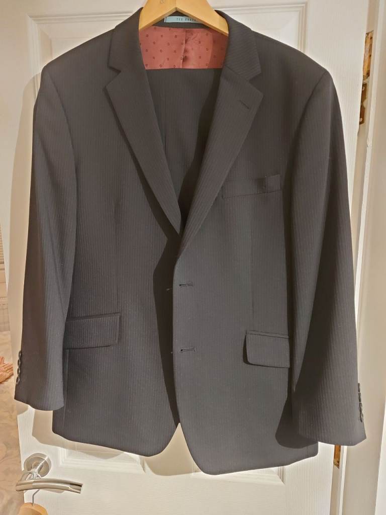 Ted baker suit, black very faint pinstripe, mens size medium/large trousers waste 36/37