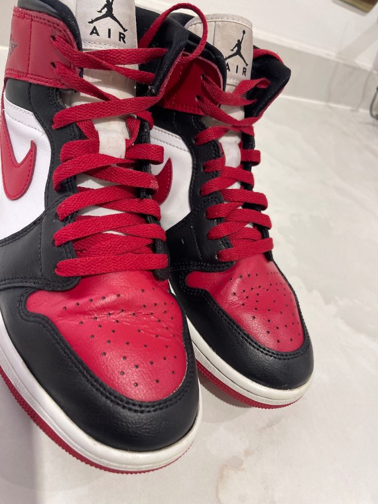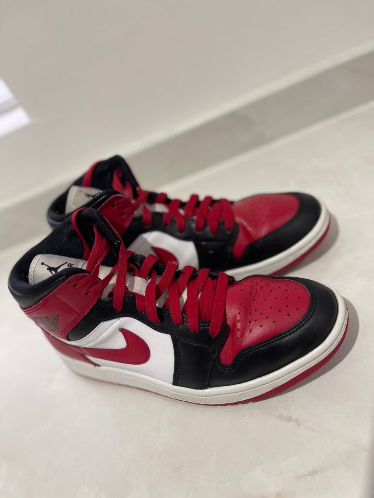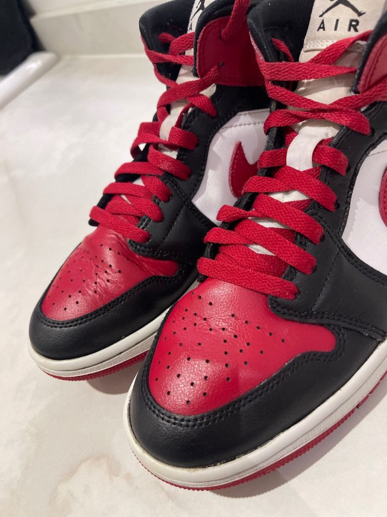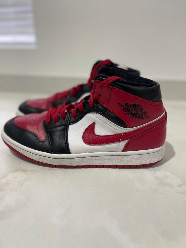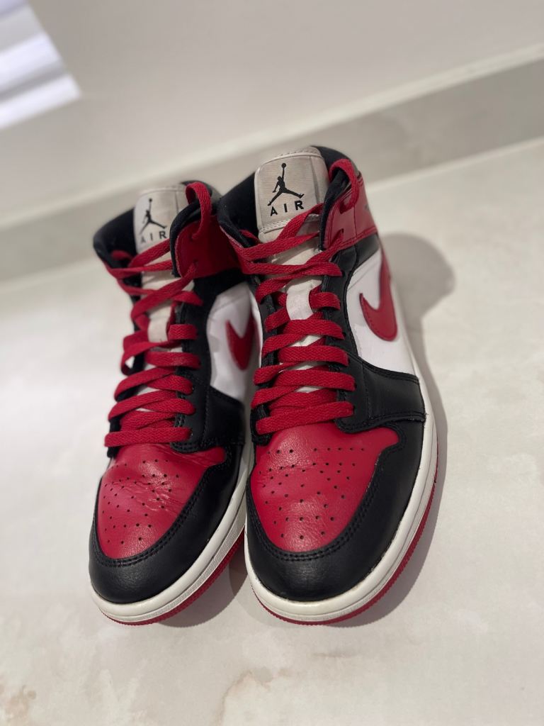 100% Genuine Nike Air Jordan 1 Mid trainers UK 7.5 Chicago Black Toe colourway