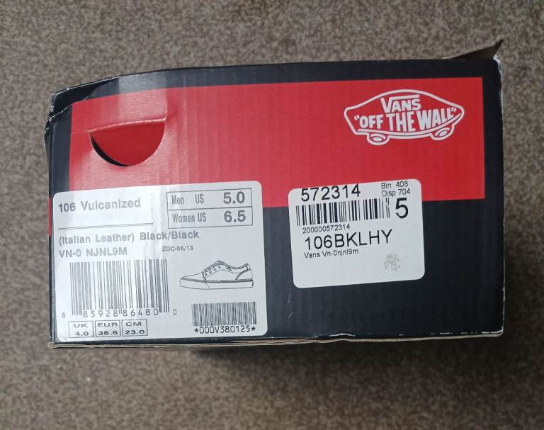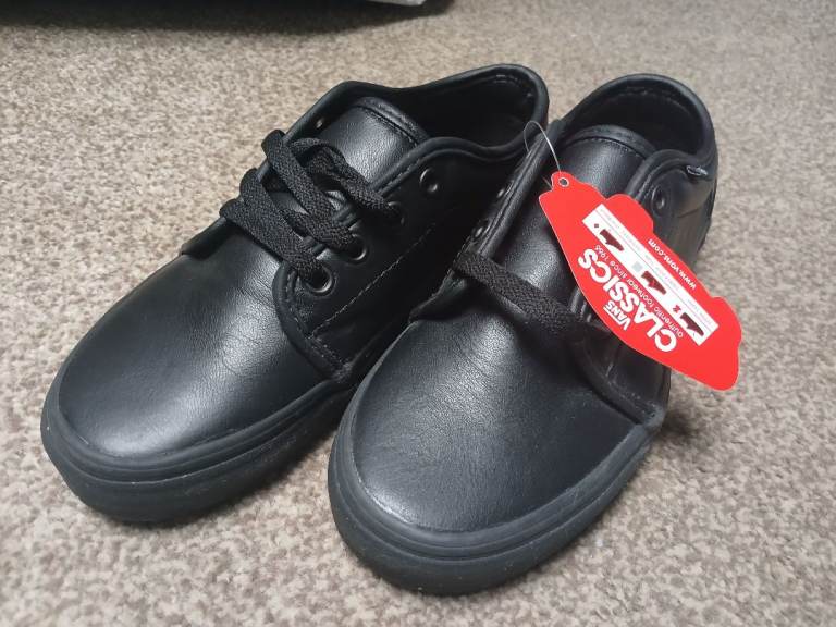 Black, leather vans adult size 4, tagged and boxed.