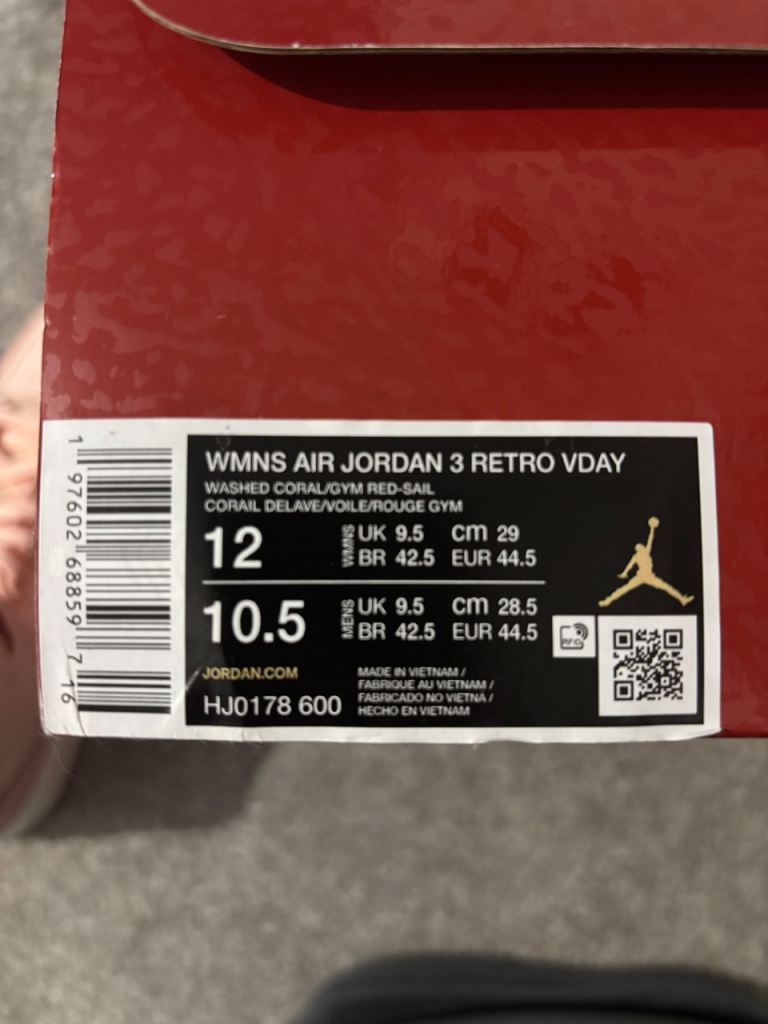 jordan 3 retro V day trainers