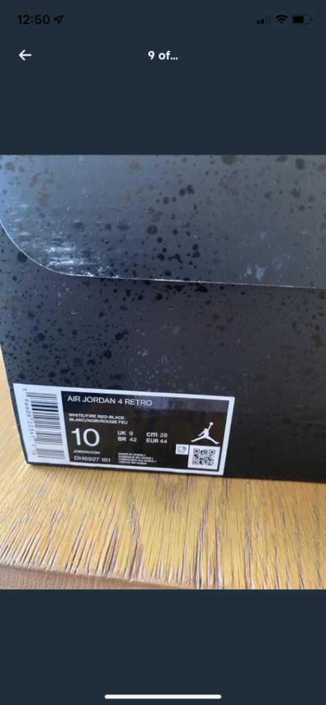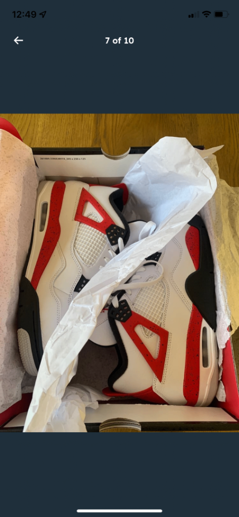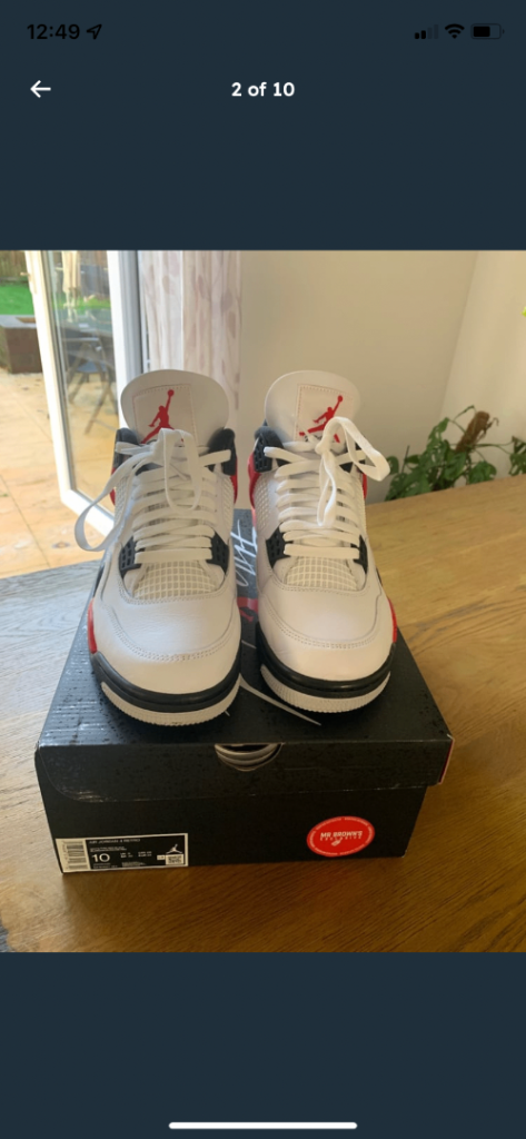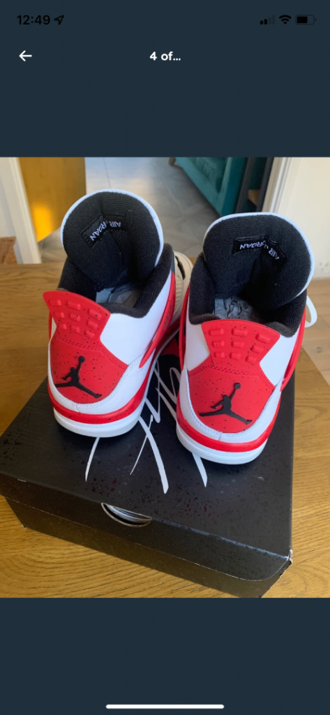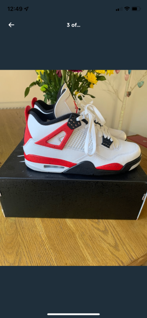 A pair of Jordan 4 Retro Red Cement (white/fire red - black worn twice excellent condition.