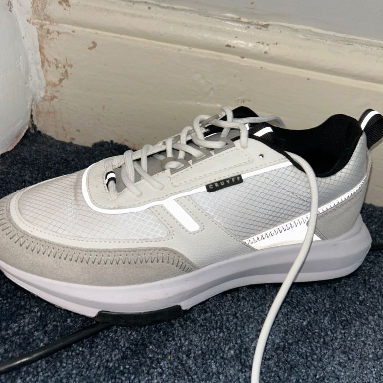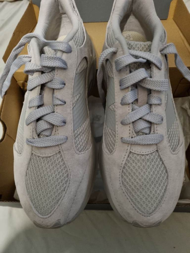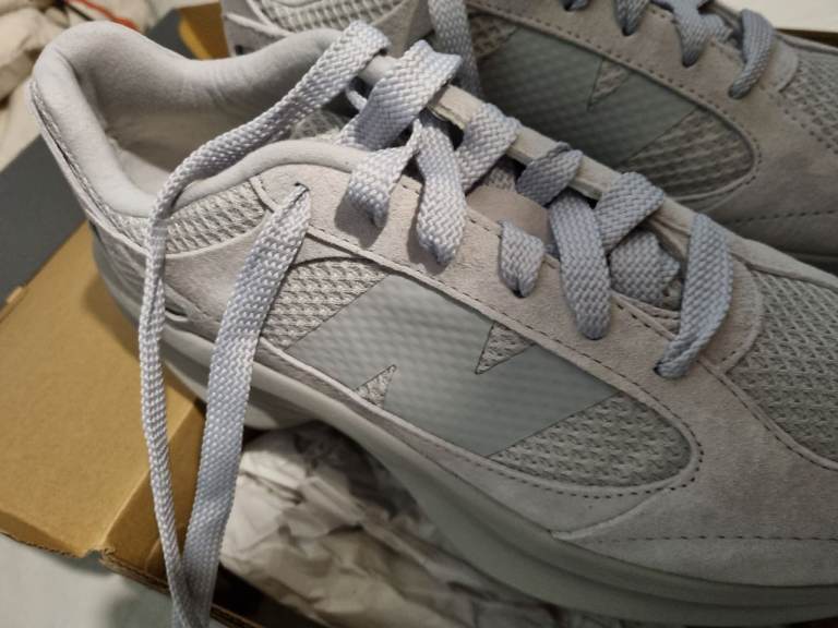 Brand new with box size uk 9.5 mens new blanace trainers light grey suede feel immaculate condition.