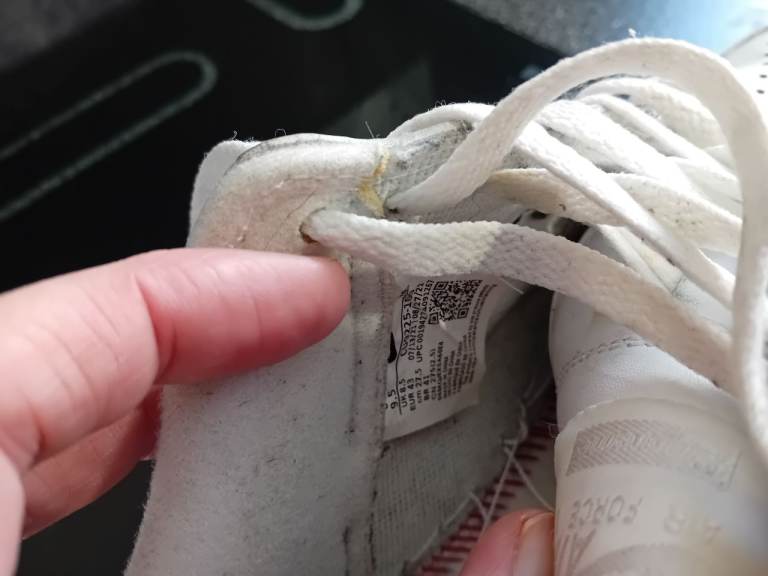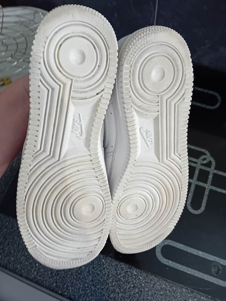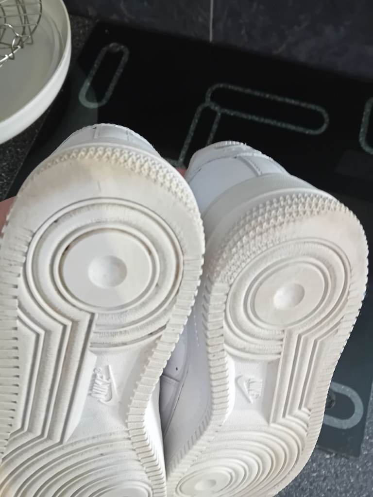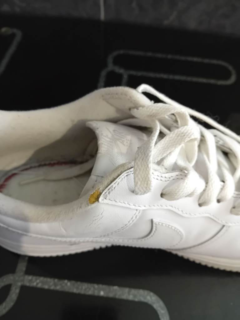 Size 8.5, great condition, slight wear on heel but not much and small tear on left as pic shows. Still amazing condition.
