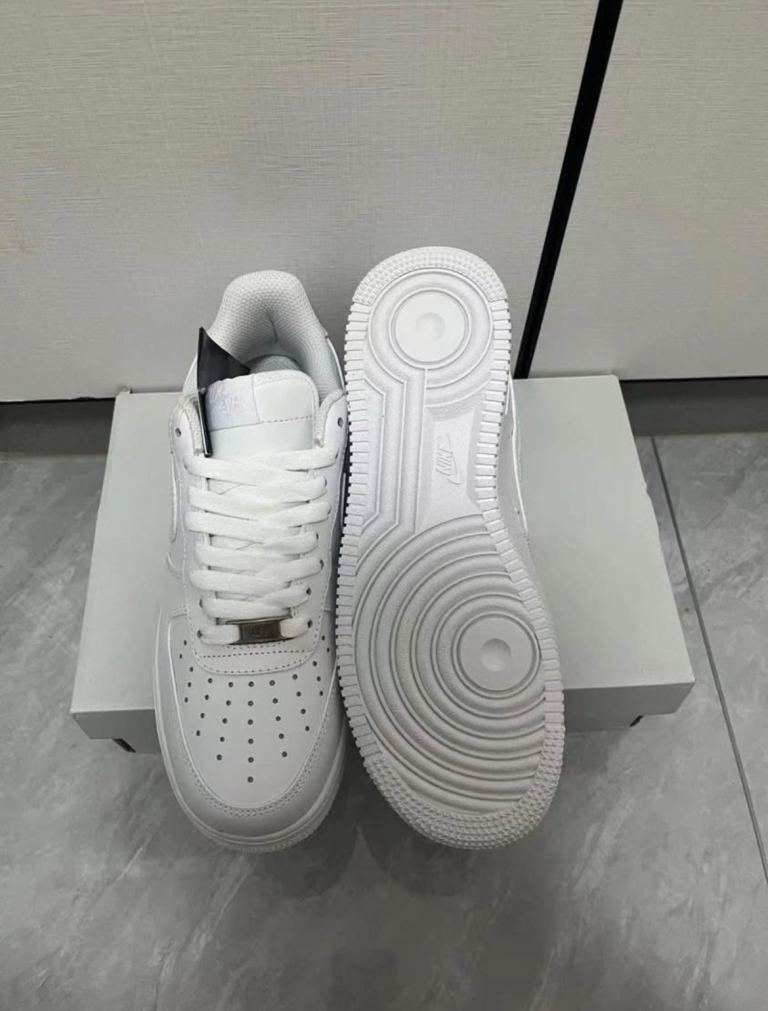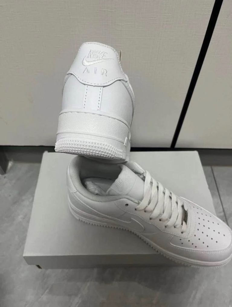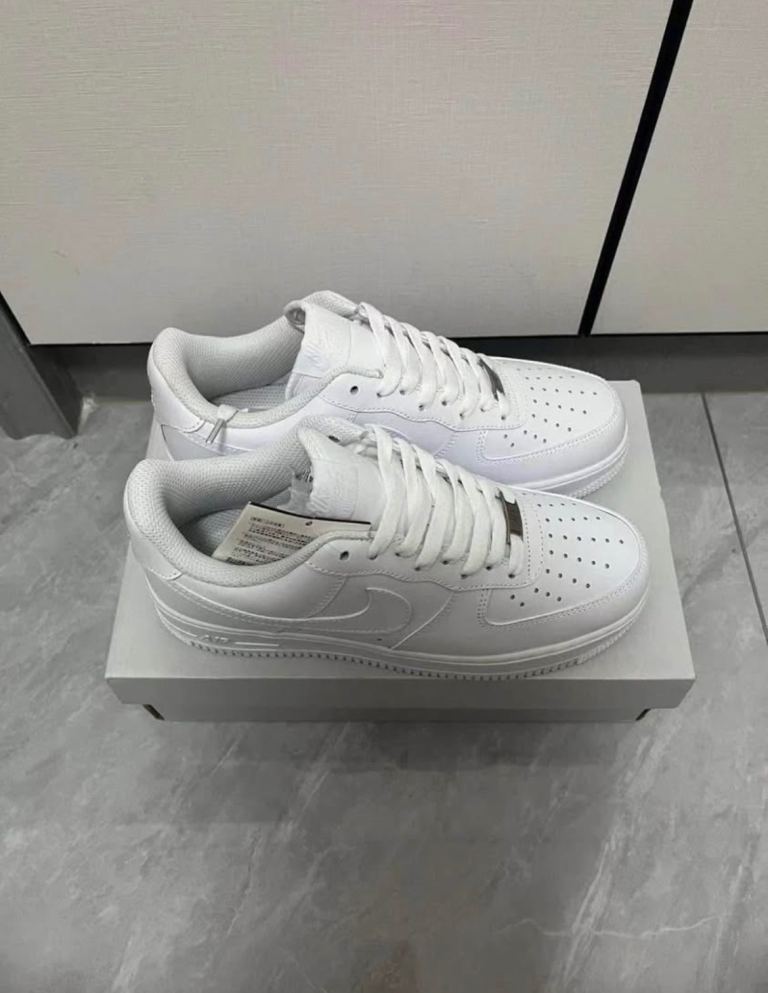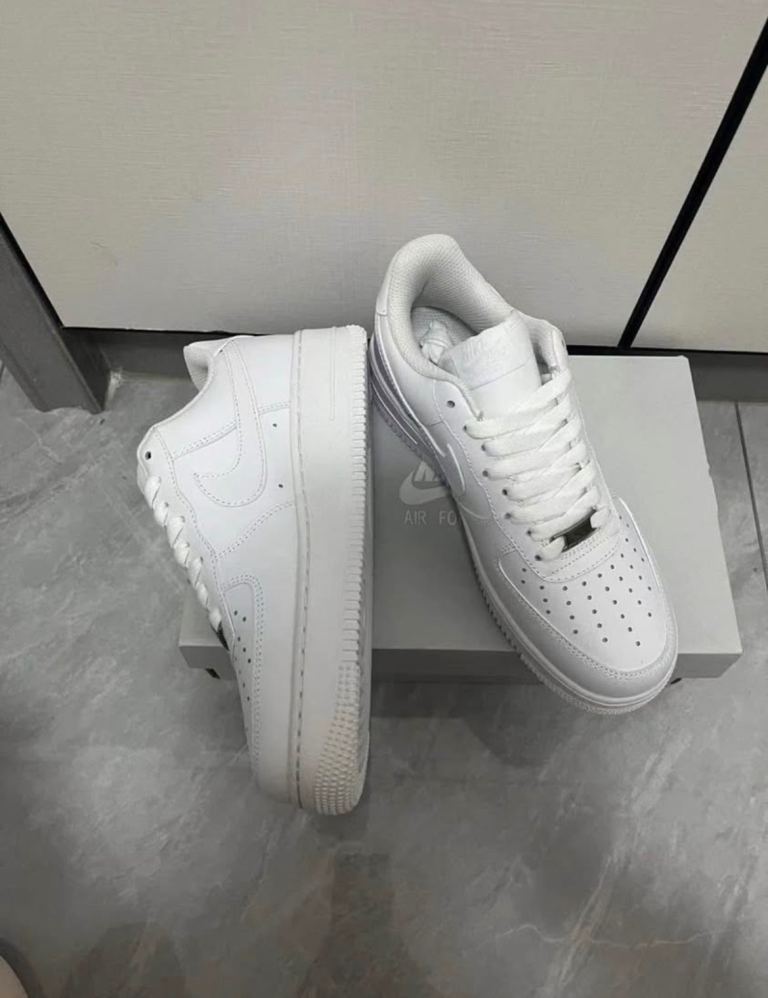 Step into timeless style with the iconic Nike Air Force 1 in all-white. These classic sneakers offer a clean, minimalist look that complements any outfit, whether you’re dressing up or keeping it casual. Crafted with premium leather, the Air Force 1 provides durability and all-day comfort, featuring the signature perforated toe box for breathability. The iconic Nike Swoosh and Air cushioning in the sole ensure a perfect blend of performance and style. Whether you’re hitting the streets or stepping out for a night on the town, these Air Force 1s are a must-have addition to any sneakerhead’s collection. Available in a variety of sizes—secure your pair today!