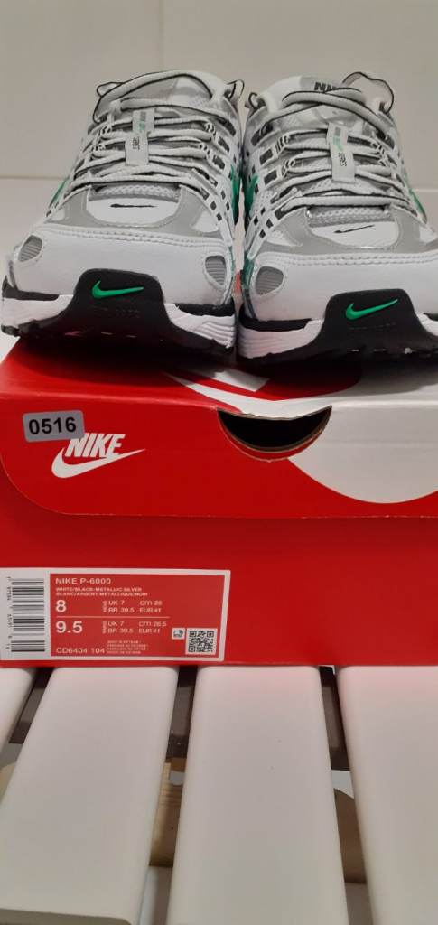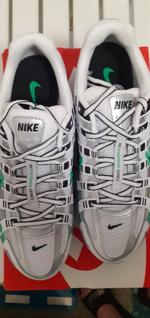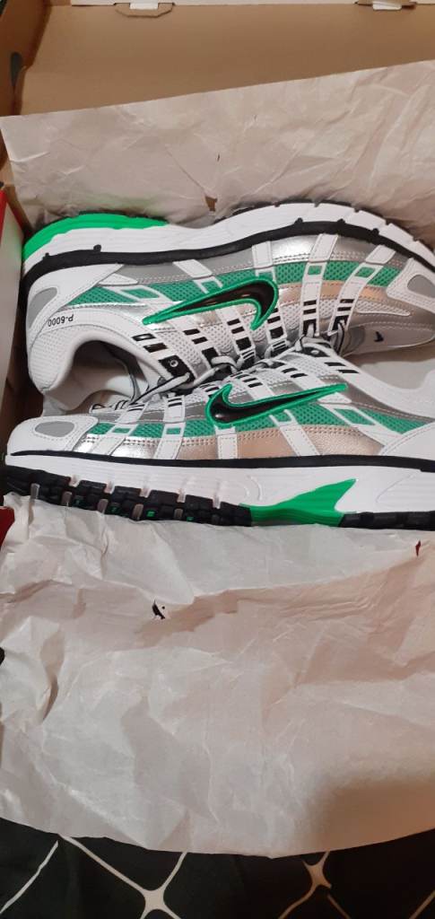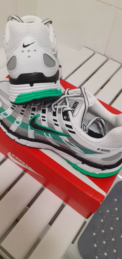Nike P-6000 White/black/Metalic siver/spring green uk 7 brand new in box.