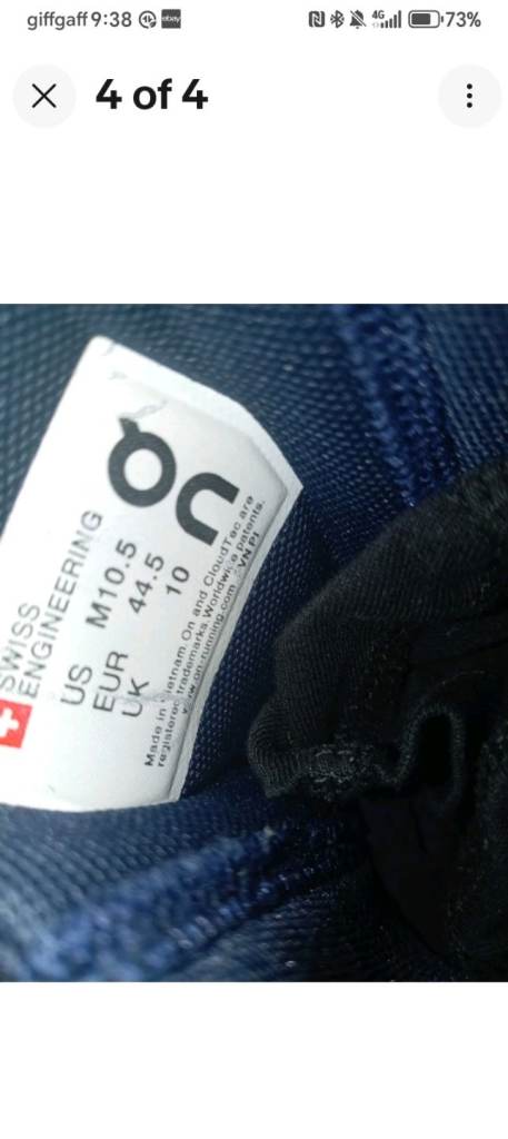 Size 10 on cloud trainers in very clean good condition with stretch laces so just slip on