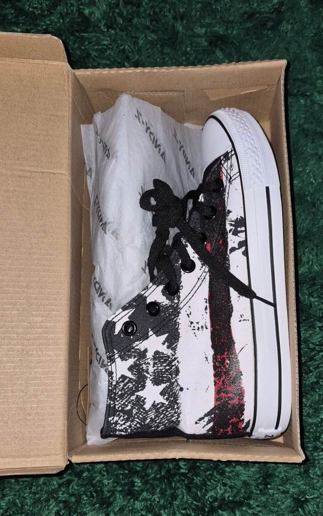 Andy-Z Lace Up Classic Canvas High-Top Trainers USA Flag - Black / White