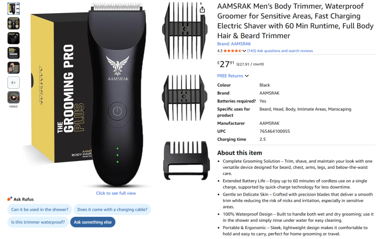 Electric Body Hair Trimmer for Men, Groin & Pubic Hair, Magnetic Head|| Brand new 50% off price