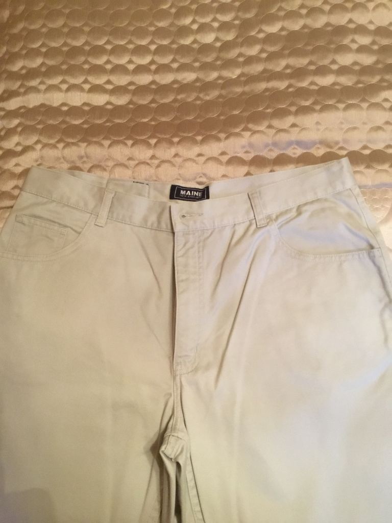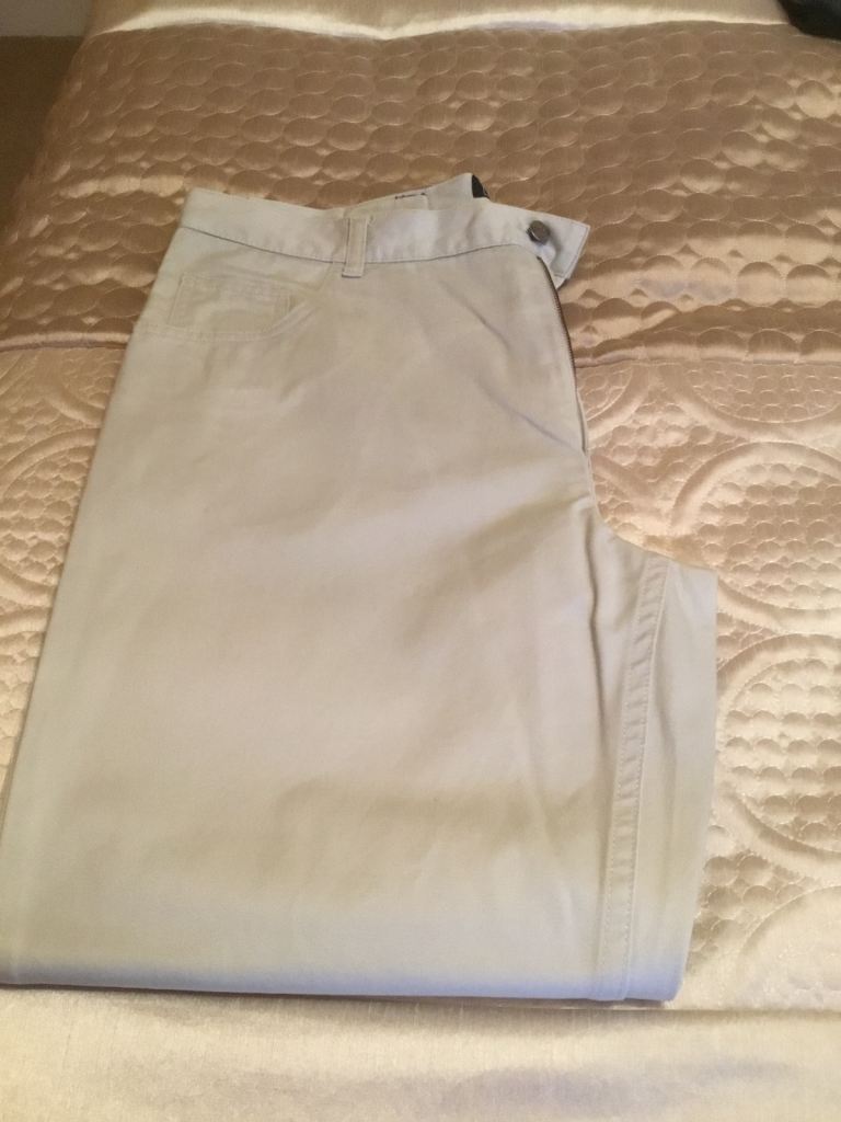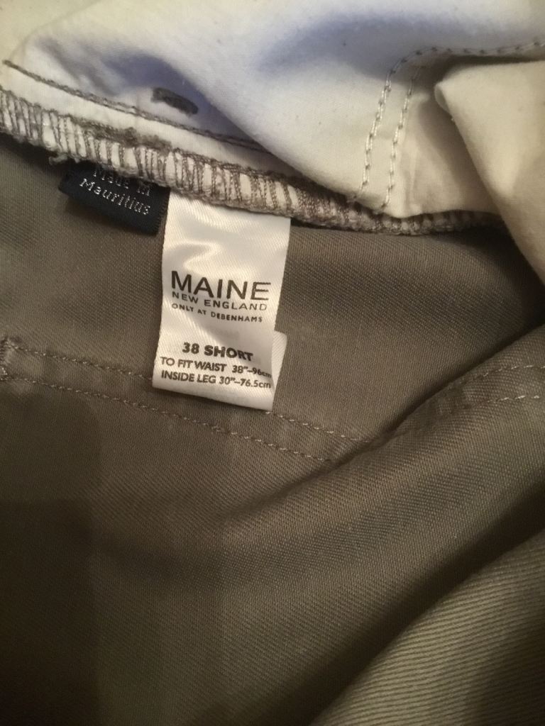 2 pairs of men’s trousers. 1 beige and 1 brown. Waist 38 inches, leg 30 inches. Only worn a couple of times so in really good condition. Willing to split if required