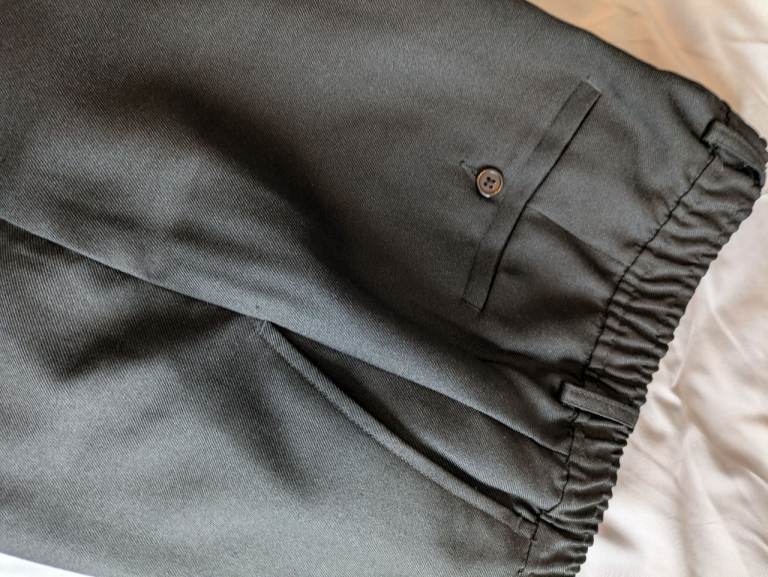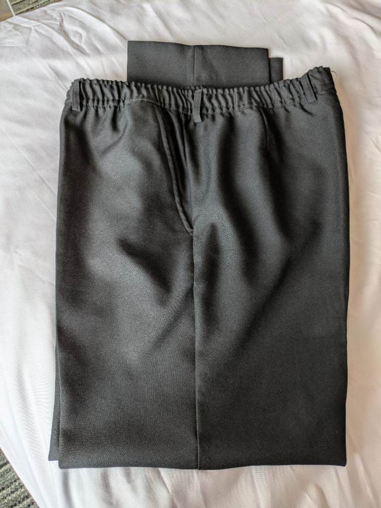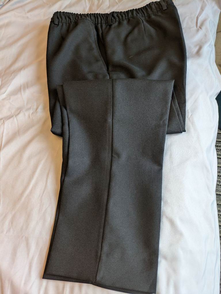 Two pairs of black, total elasticated waist trousers. Side pockets and back pocket.