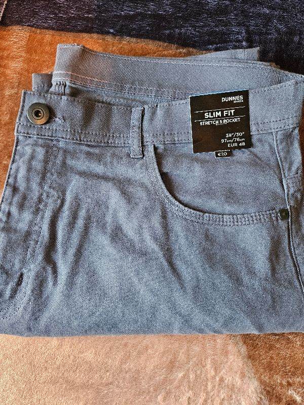 Dunnes new slim fit mens Casual Stretch trousers with 5 pockets size 38x30 collection only. £18.00 for both.....