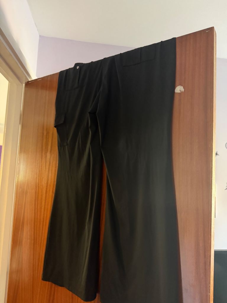The size is 36 inch waist, trouser leg length is long. The trousers are still in the original packing and have never been worn.