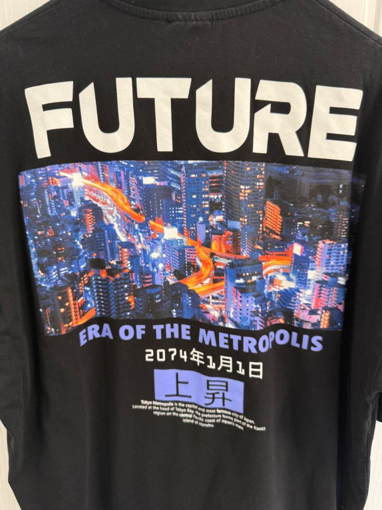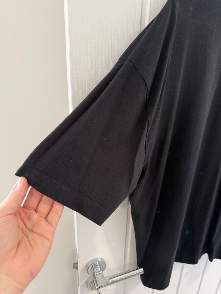 The t-shirt is in like new condition as has only been worn a couple of times, and comes in a size XS in an oversized fit. This would definitely fit a size small and medium as well as it’s quite a large oversized fit, only selling due to having a clear out of clothes I don’t wear much. It is black in colour with a large city print to the back, and features short sleeves and a crew neck. From a pet and smoke free home.
