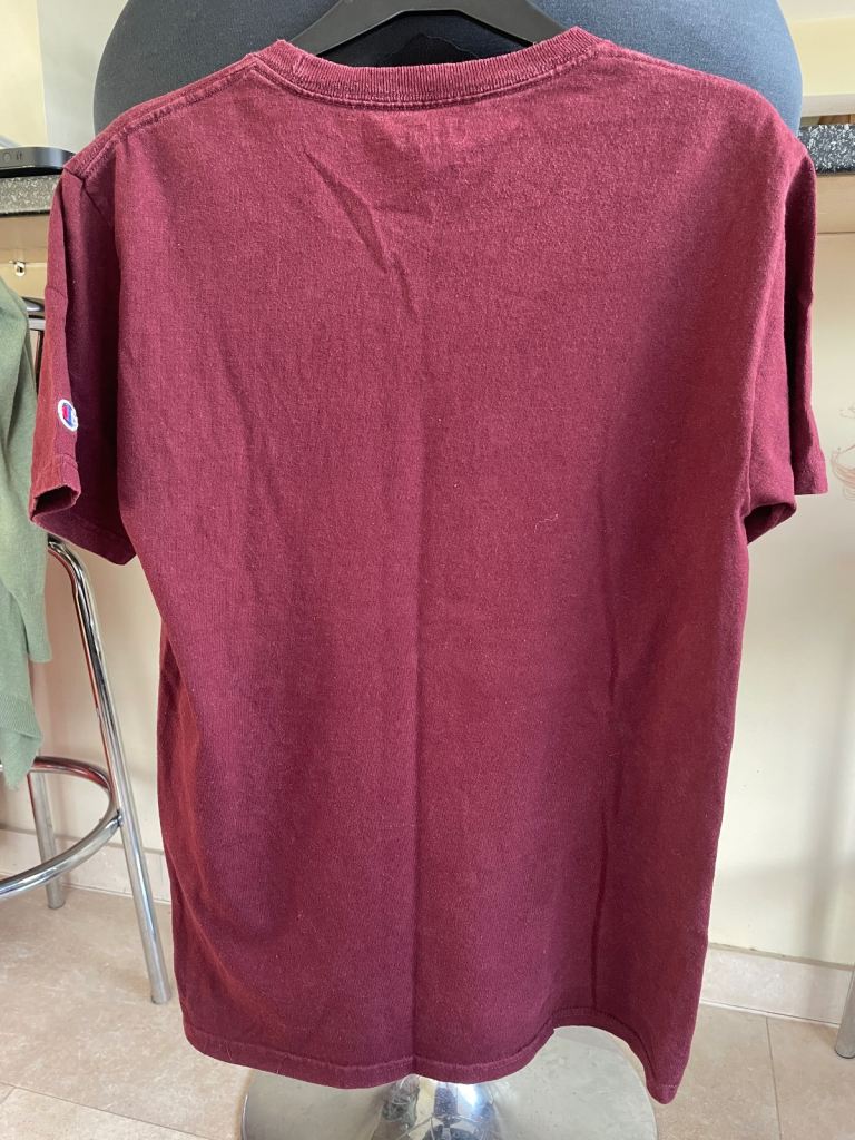 I have for sale a burgundy Harvard logo men’s short sleeve T shirt from Champion to fit size S .