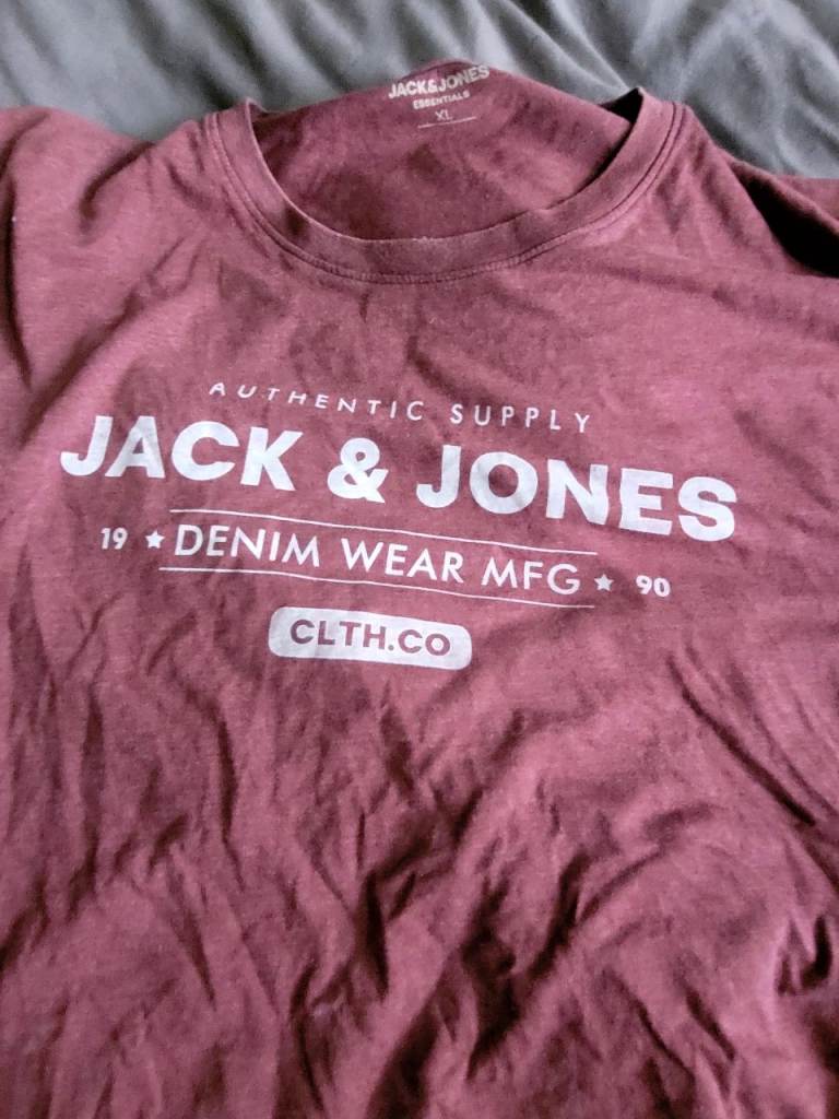 Refresh your wardrobe with this authentic Jack & Jones Essentials t-shirt. Sized XL, this preloved piece features a classic burgundy heather shade and the iconic "Denim Wear MFG" graphic print.