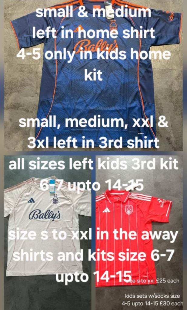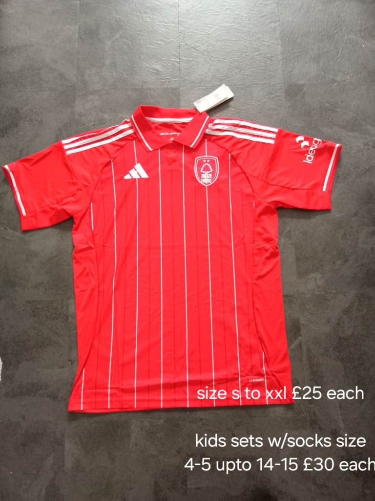 Brand new nottingham forest 25/26 season shirts, home, away & 3rd shirt available £25 each
