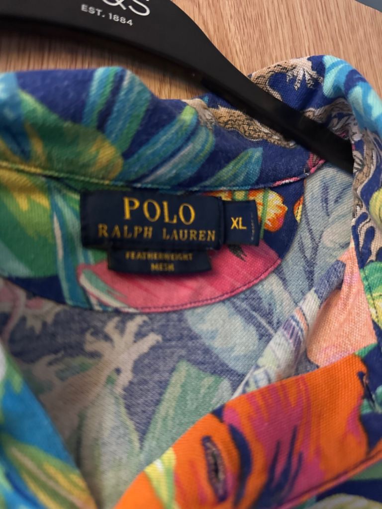 This Ralph Lauren Men's Japanese Dragon Hawaii Colourful Cotton Polo Shirt in size L is a vibrant and stylish addition to any man's wardrobe. Made from 100% cotton, this regular fit polo features a collared neckline, short sleeves, and a button closure. The multicoloured design with a Hawaiian theme makes it perfect for the summer and spring seasons, adding a pop of colour to any outfit. Perfect for casual or smart-casual occasions, this polo shirt combines comfort and style effortlessly