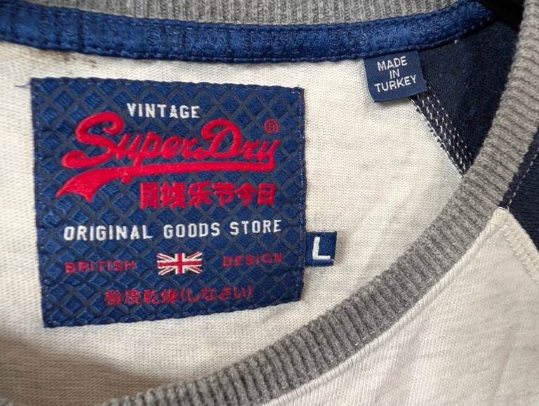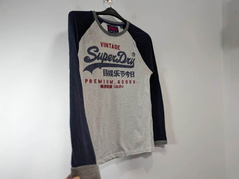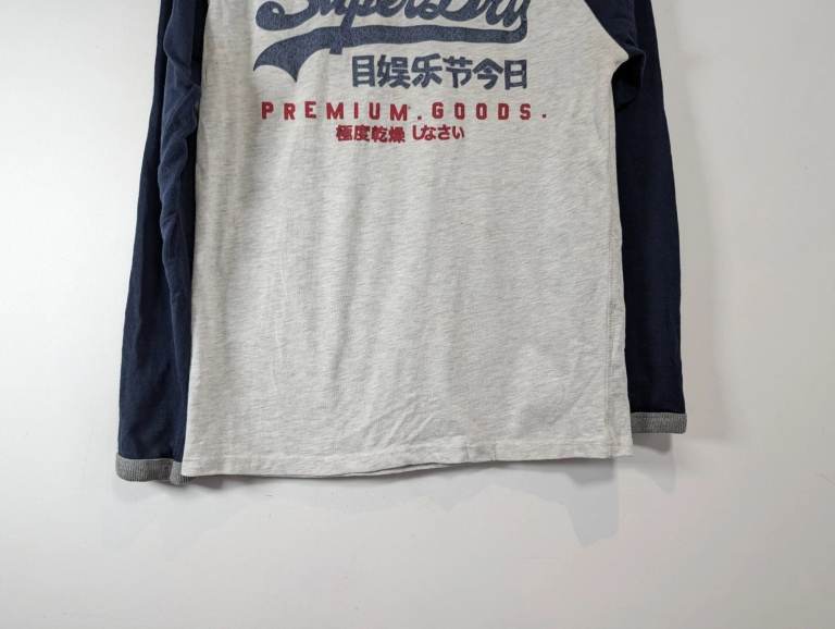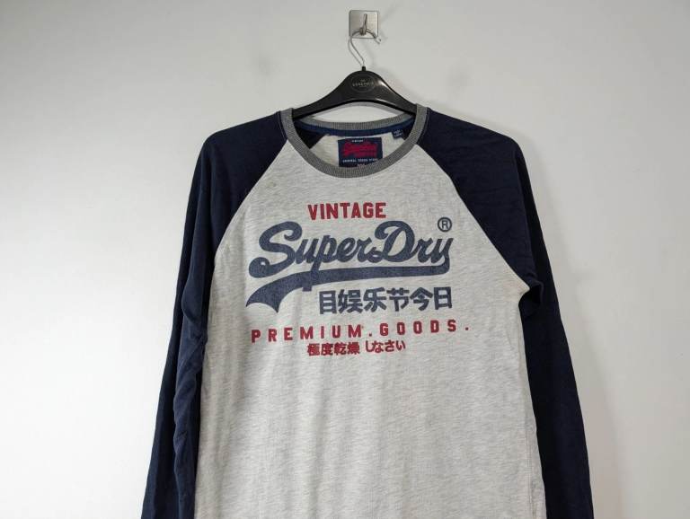 SuperDry Long Sleeve T Shirt Mens Large Vintage Premium Goods Felt Logo