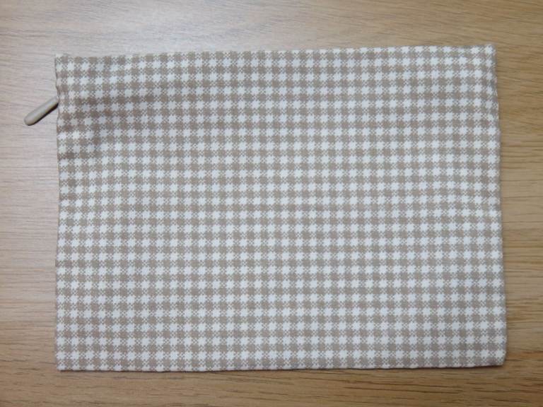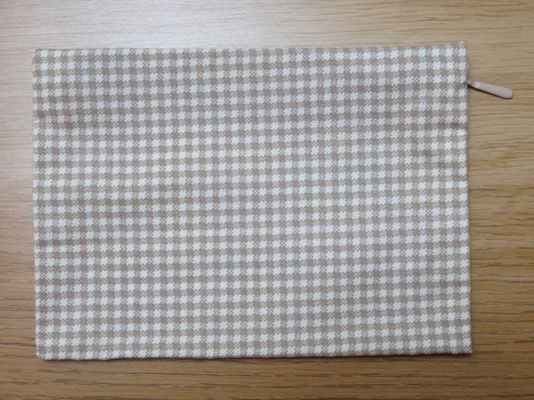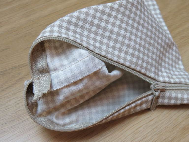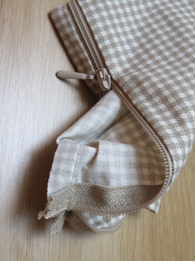 Coin Pouch 15.5 x 11cm - fabric wallet purse with zipper zip beige/ white checkered