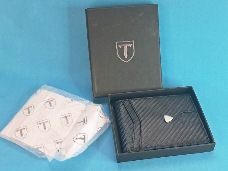 Brand new TIFUERY men's wallet in black, still in its original packaging.