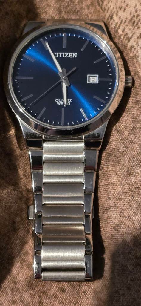 2 MENS QUARTZ CITIZEN WATCHES, BOTH WORKING GREAT, BLACK ONE APPEARS TO BE UNWORN, STILL HAS TAG ON IT, BLUE ONE IS WORN AND HAS HAD A COUPLE OF LINKS OFF IT WHICH I DIDNT GET WITH THE WATCH, NEITHER HAVE BOXES BUT I CAN GIVE THE BUYER A COUPLE OF FREE GENERIC BOXES F0R THEM IF REQUIRED.