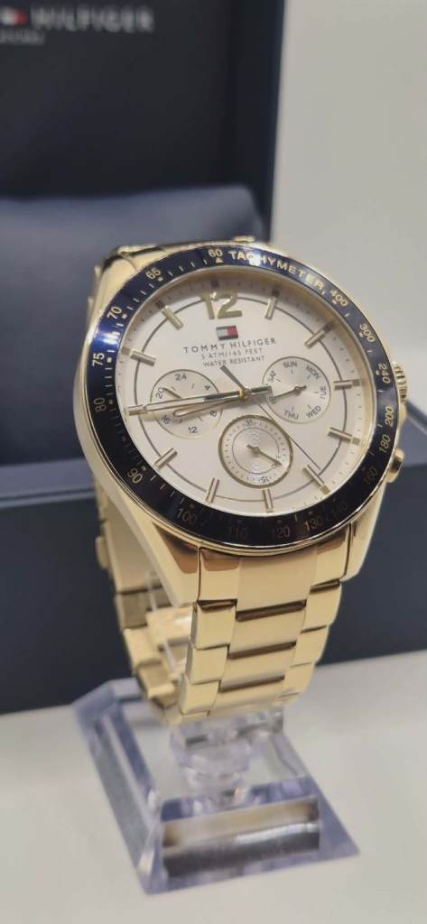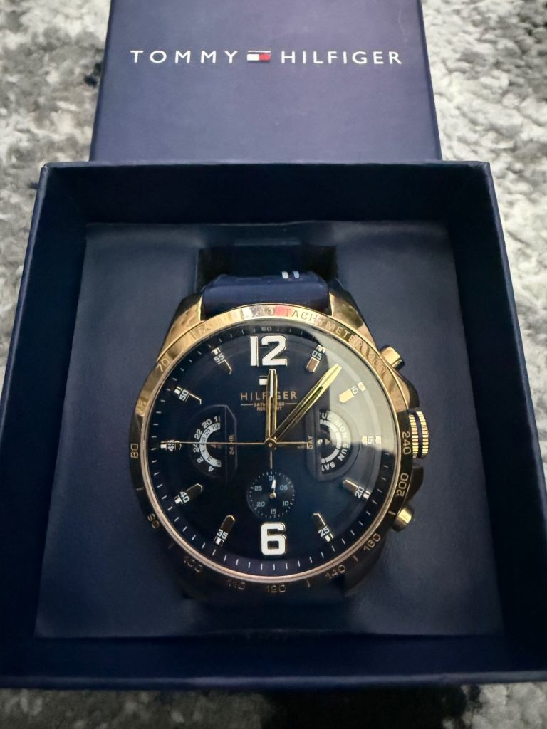 This Beverly Hills Polo Club Watch for men features a combination of gold and silver stainless steel for the strap and gold detailing on the watch face. The watch has a quartz movement, white dial with Roman numerals, and a water resistance of 30m. It comes with papers (see photos) and the original box/packaging. Some slight wear/damage to the external protective cardboard casing as item has been in storage however the watch itself is in perfect brand new condition and has never been worn. Open to reasonable offers!