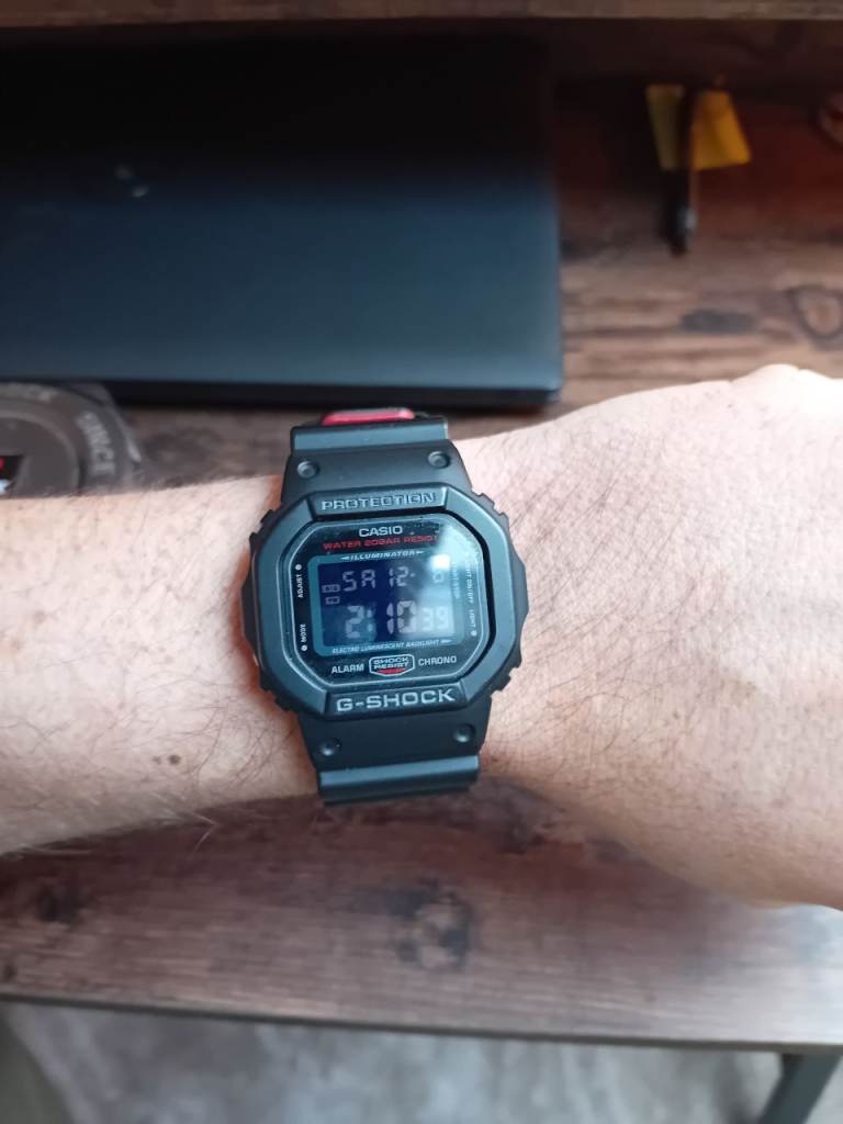 Casio g shock black and red like new with case. Its a thin watch not chunky like most g shock.